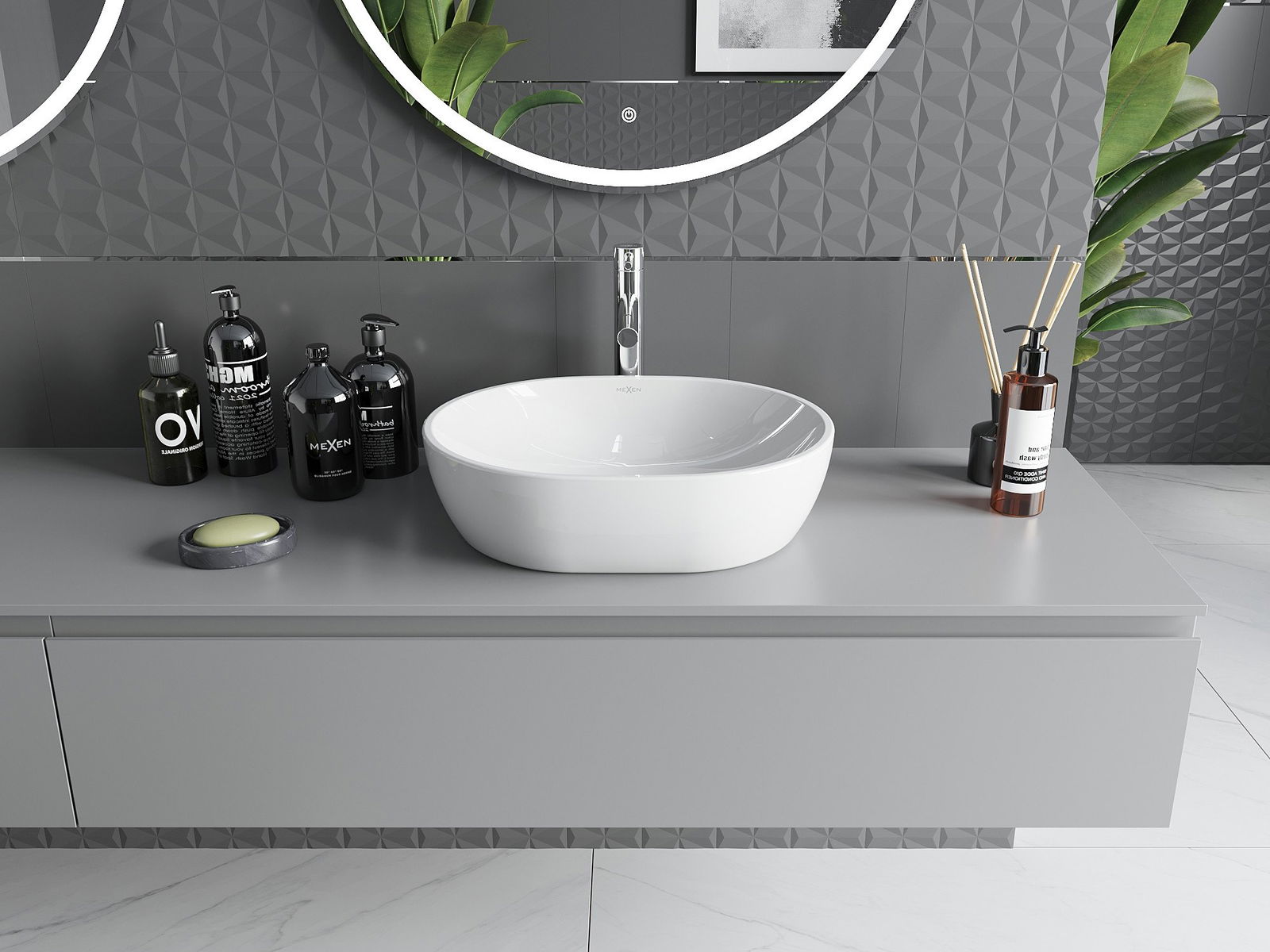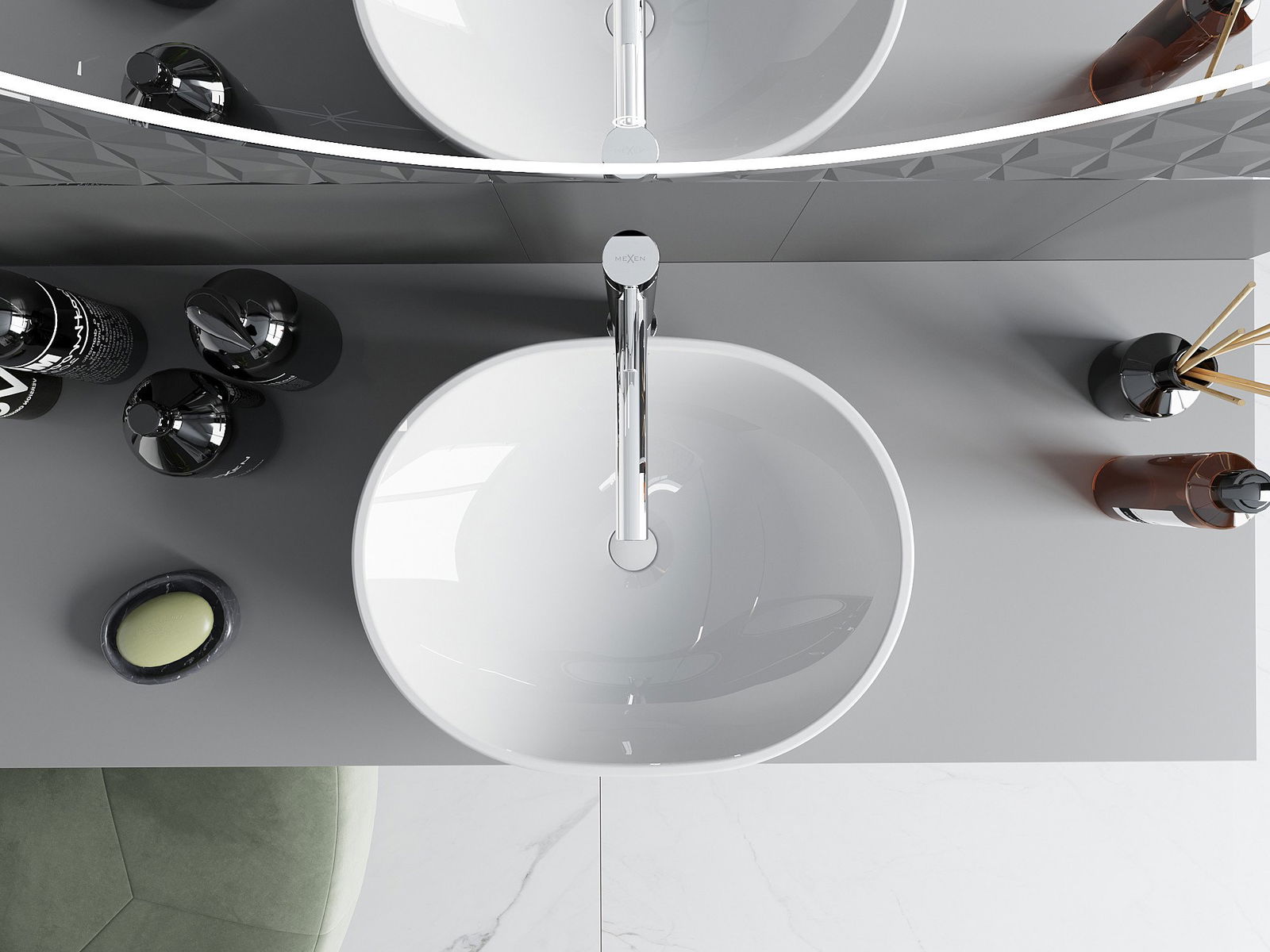 Hochglänzende Keramik sind elegant und zeitlos. Es verleiht dem Badezimmer ein besonderes Leuchten, betont seine Ästhetik und führt mehr Eleganz in das Innenraum. Der Glanz reflektiert Licht, dank dessen den Eindruck von Vergrößerung und Helligkeit vermittelt.