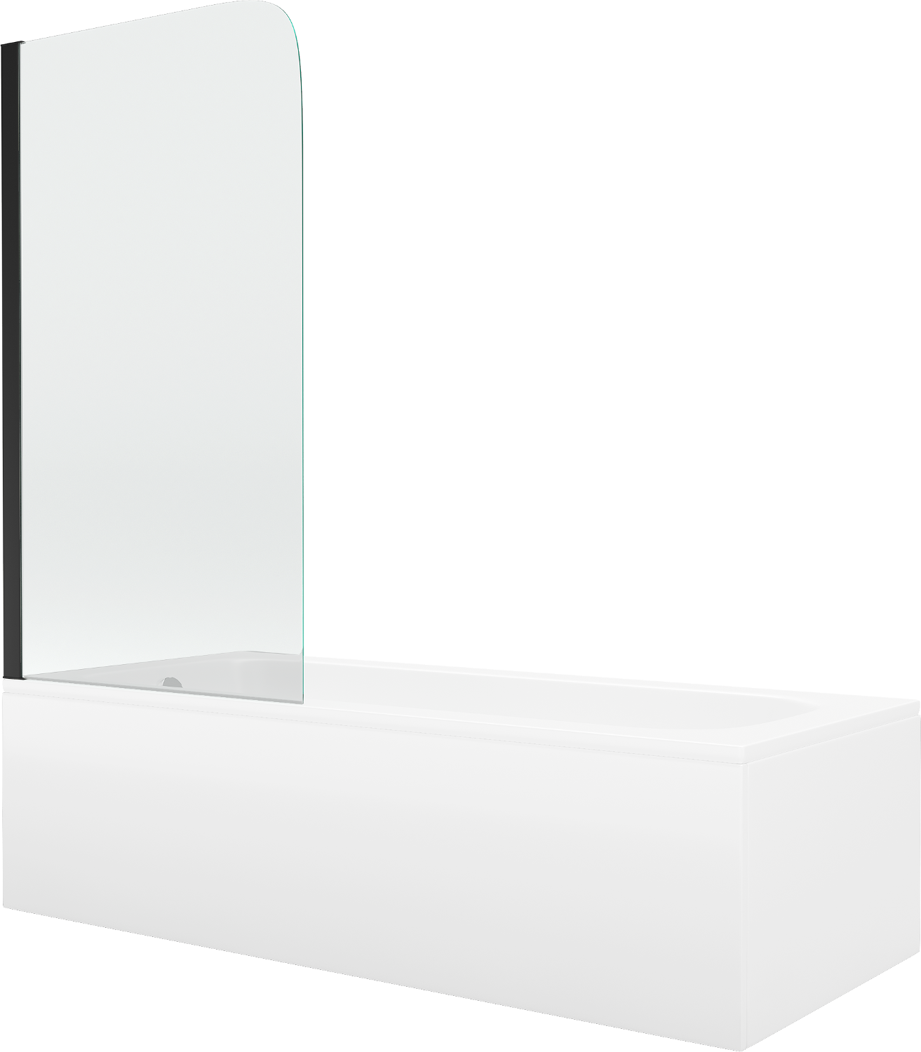 Mexen Vega rechteckige Badewanne 170 x 70 cm mit Verkleidung und 1-flügeliger Abtrennung 70 cm, transparent, schwarz