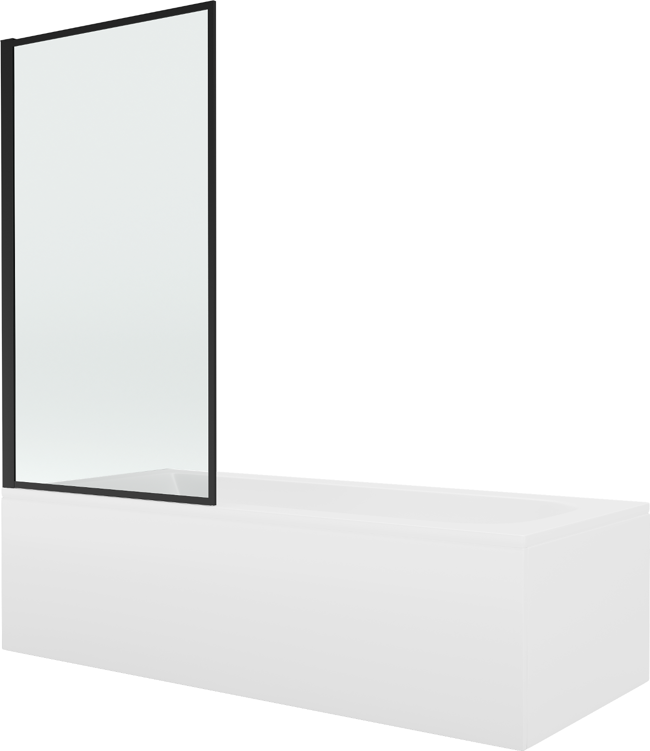 Mexen Vega Rechteckige Badewanne 180 x 80 cm mit Verkleidung und 1-flügeliger Abtrennung 80 cm, schwarzes Muster