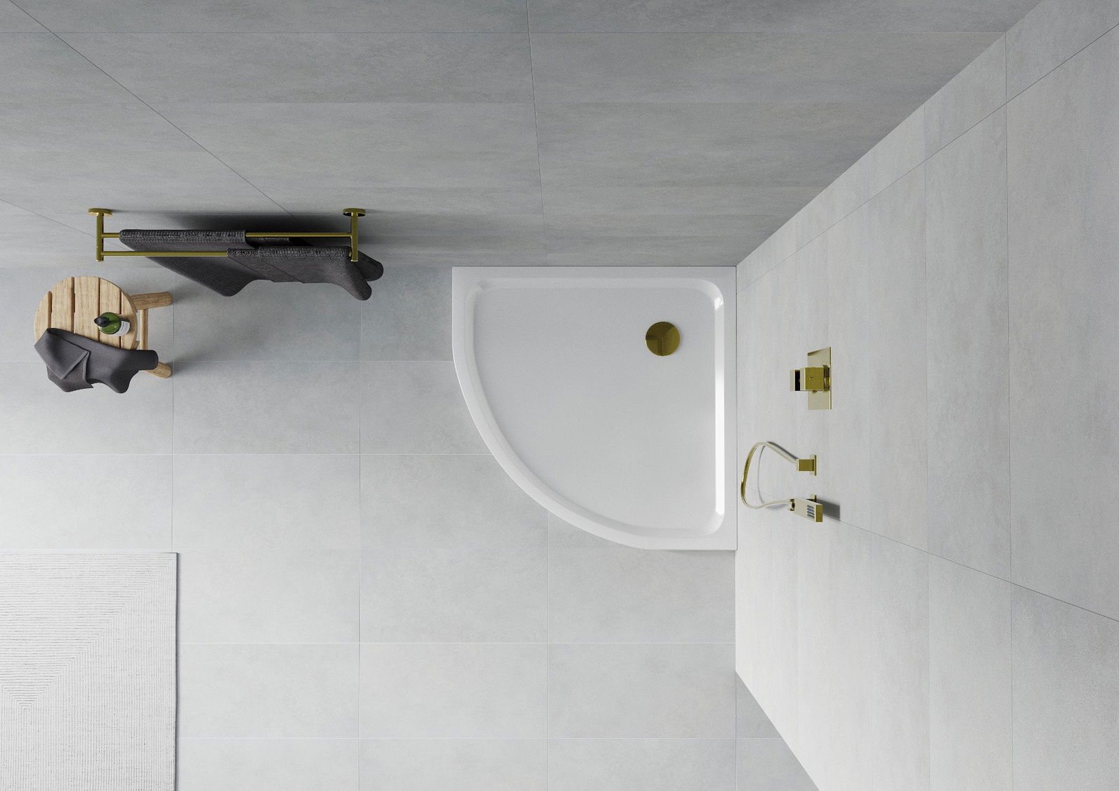Der Mexen Flat Halbrunde Duschwanne Slim 70 x 70 cm ist die ideale Lösung für ein modernes Badezimmer. Hergestellt aus hochwertigem Sanitäracryl, ist er langlebig und leicht zu reinigen. Sein verstärkter Boden sorgt für mehr Stabilität, und die Tiefe von 5 cm macht ihn komfortabel in der Benutzung. Das Set enthält einen von oben zu reinigenden Siphon und einen Abfluss mit einem Durchmesser von 90 mm. Die elegante weiße Farbe und das goldene Finish des Stopfens verleihen ein luxuriöses Aussehen, was ihn nicht nur zu einem praktischen, sondern auch zu einem ästhetischen Element in jedem Badezimmer macht.