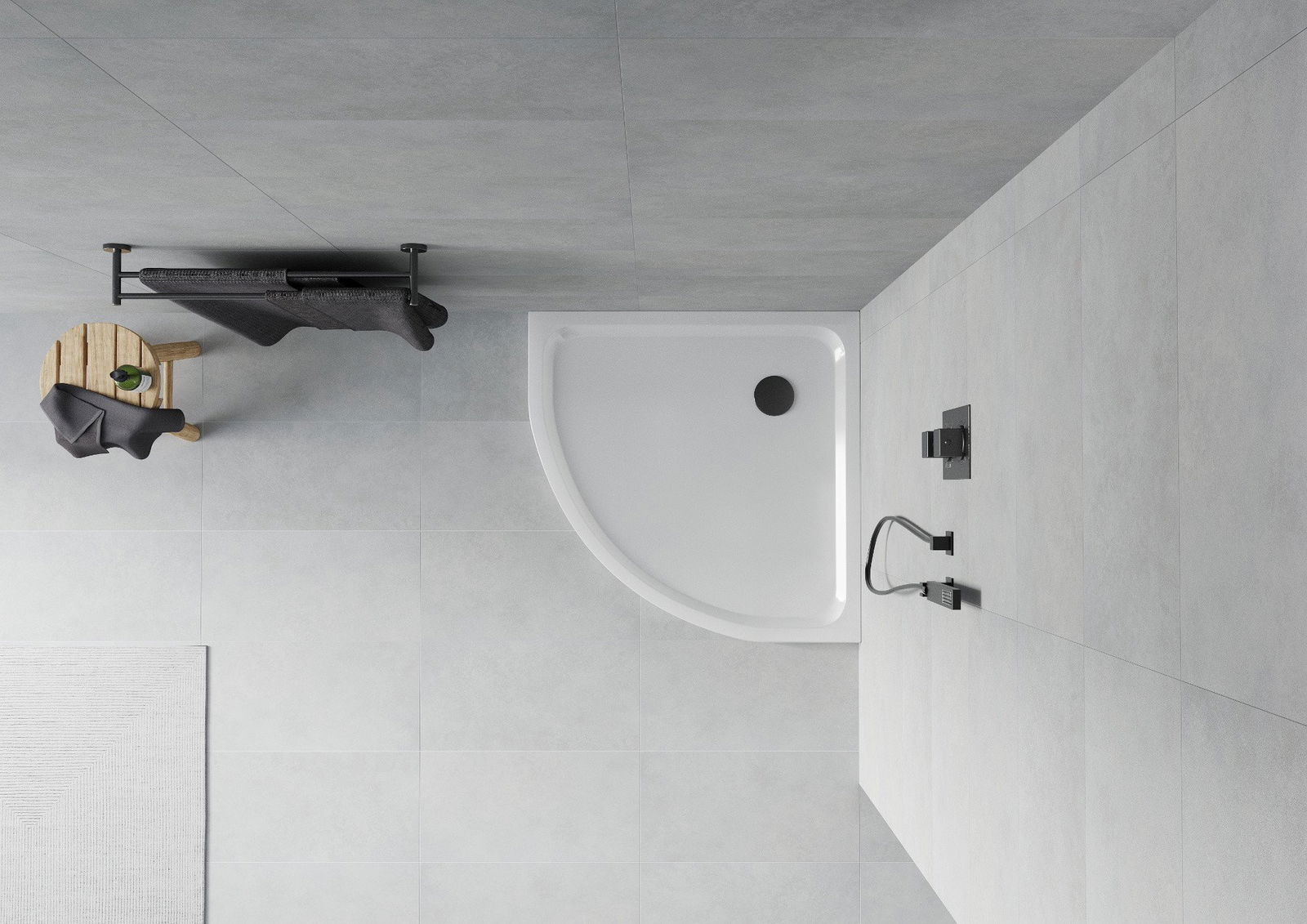 Mexen Flat Duschwanne halbkreisförmig Slim 80 x 80 cm, weiß, Siphon schwarz - 41108080B