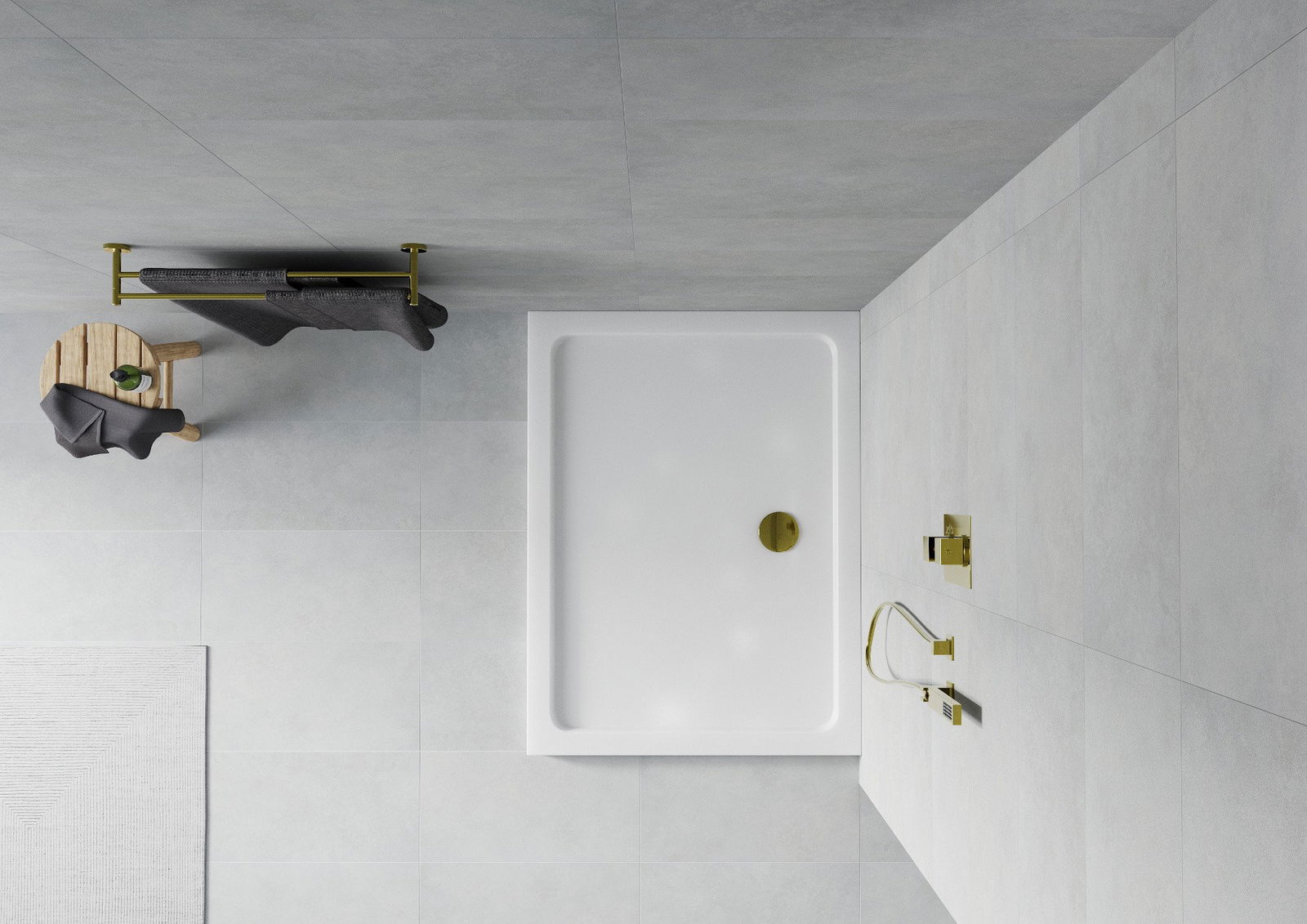 Mexen Flat rechteckige Duschwanne slim 140 x 100 cm, weiß, goldener Siphon - 40101014G