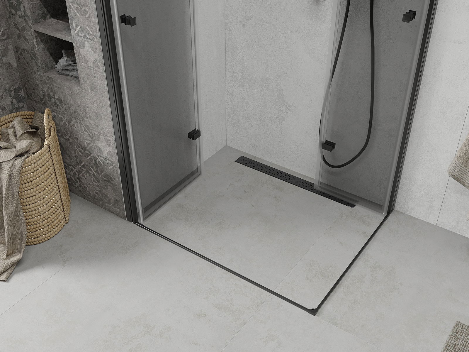 Abhängig von Ihren Bedürfnissen kann das Produkt sowohl auf der Duschschale als auch direkt auf dem Boden montiert werden. Mit der universellen Montagemethode können Sie das Produkt an verschiedene Arten von Badezimmern anpassen und Raum konfigurieren.