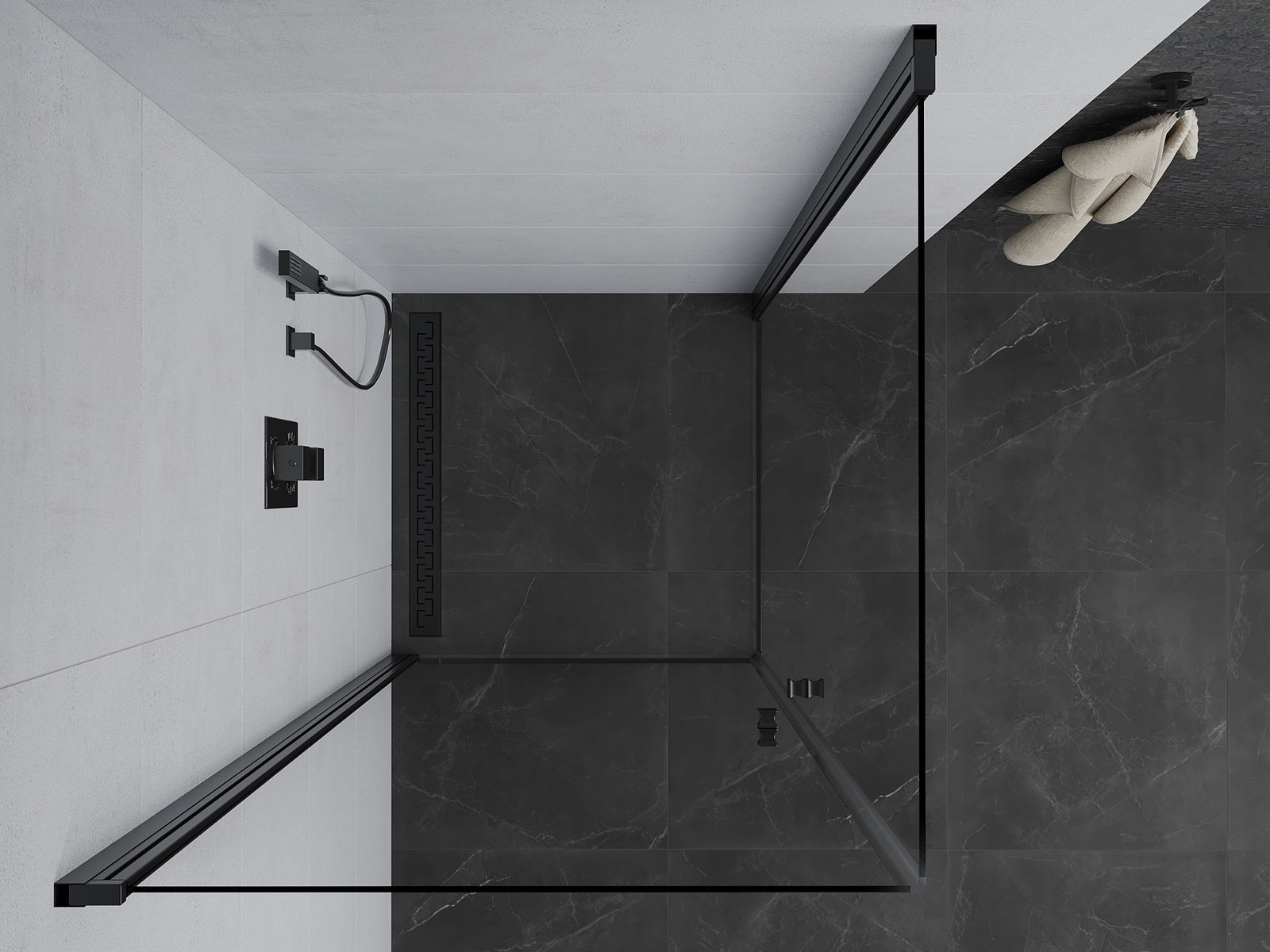 Der praktische und bequeme Griff bestand aus langlebigem und widerstandsfähigem Metall. Die modische Form in Kombination mit einem auf die Farbe der Profile zugeschnittenen Finish verleiht dem Ganzen einen modernen und stilvollen Look und betont die Ästhetik jedes Badezimmers.
