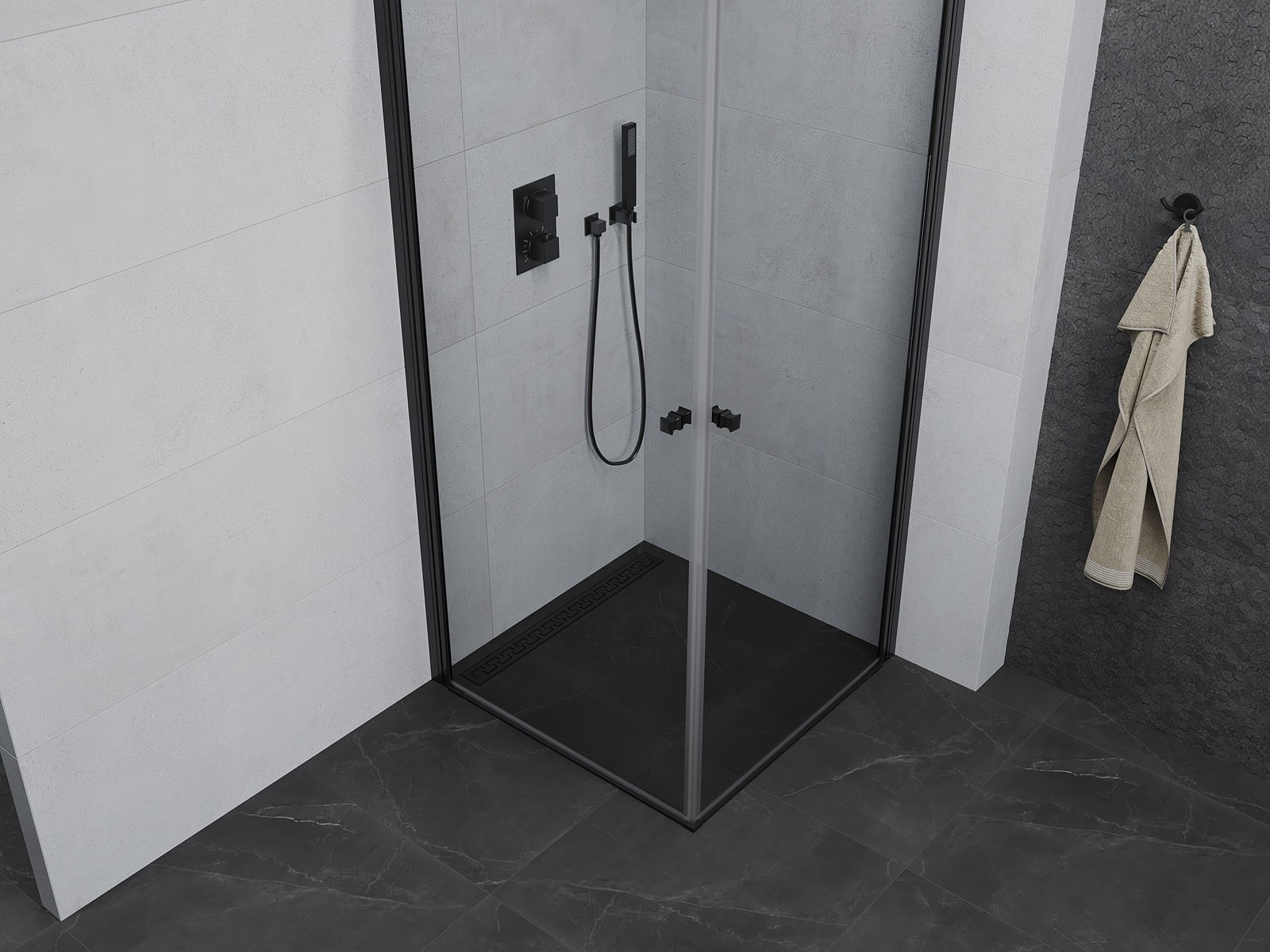 Mexen Pretoria Duo Duschkabine zum Öffnen 70 x 70 cm, transparent, schwarz - 852-070-070-70-00-02