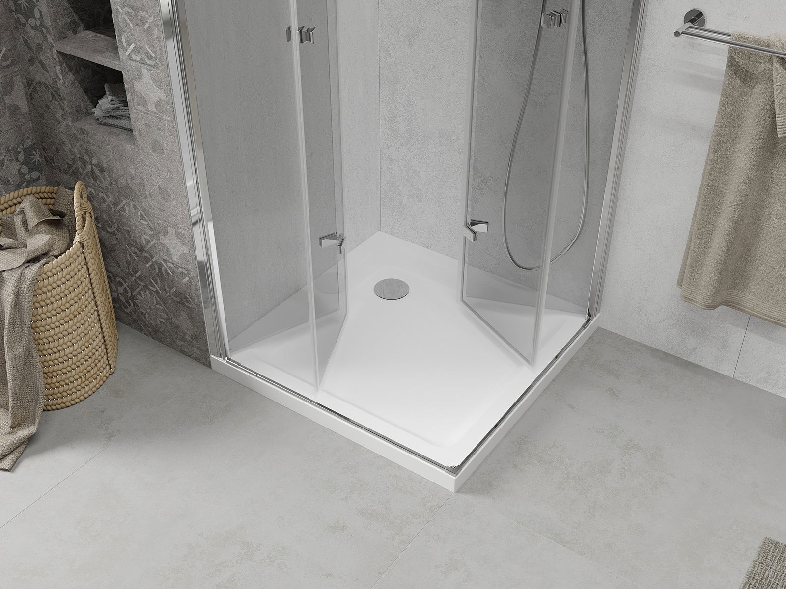 Mexen Lima Duo Duschabtrennung klappbar 100 x 100 cm, transparent, Chrom + Duschwanne Flat - 856-100-100-01-02-4010