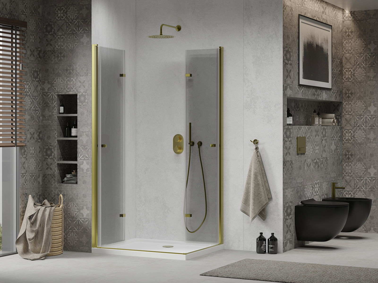 Der handliche und bequeme Griff besteht aus langlebigem und widerstandsfähigem Metall. Die modische Form in Kombination mit einer farblich auf die Profile abgestimmten Oberflächenveredelung verleiht dem Ganzen ein modernes und stilvolles Erscheinungsbild und betont die Ästhetik jedes Badezimmers.