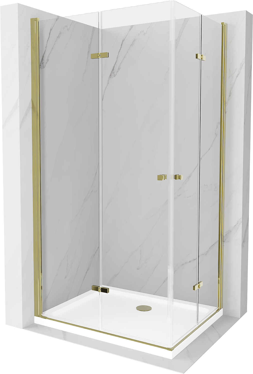 Mexen Lima Duo Faltduschkabine 80 x 70 cm, transparent, gold + Flat Duschwanne - 856-080-070-50-02-4010G