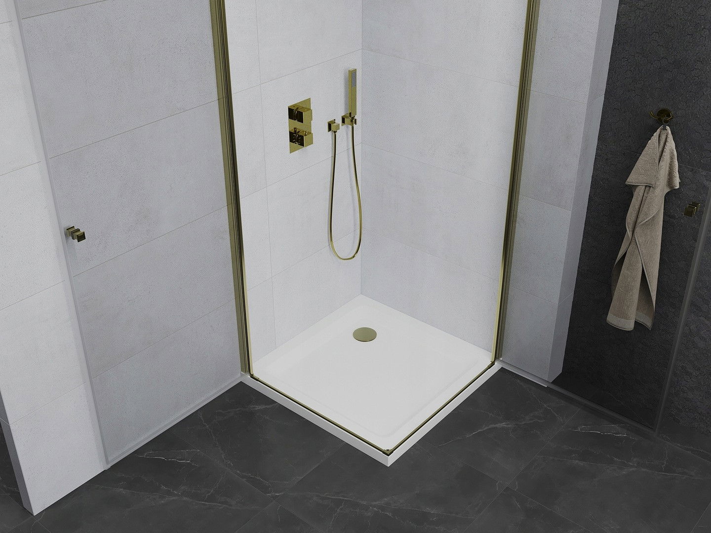 Mexen Pretoria Duo Duschkabine schwenkbar 70 x 70 cm, transparent, gold + Flat Duschwanne - 852-070-070-50-02-4010G