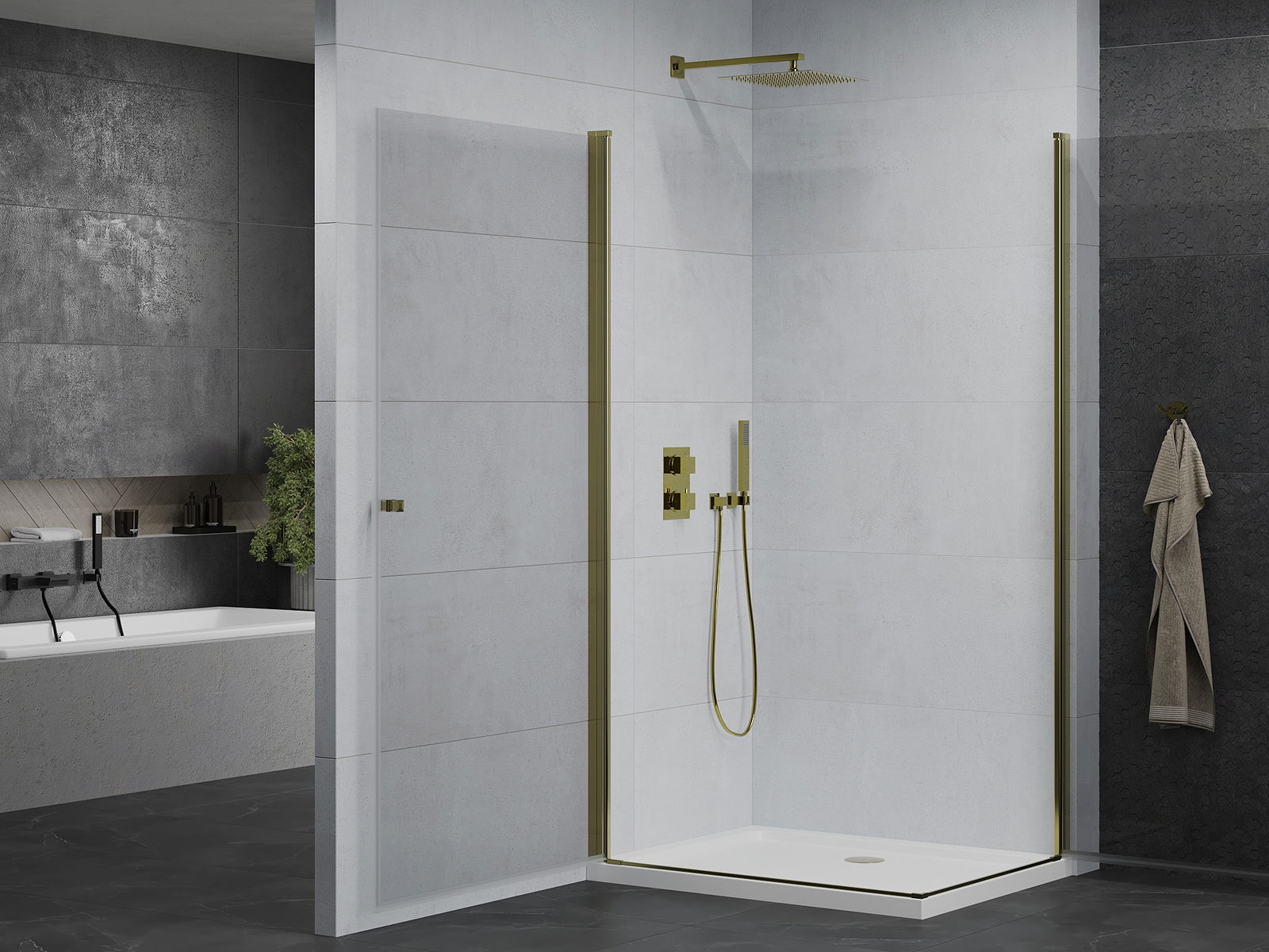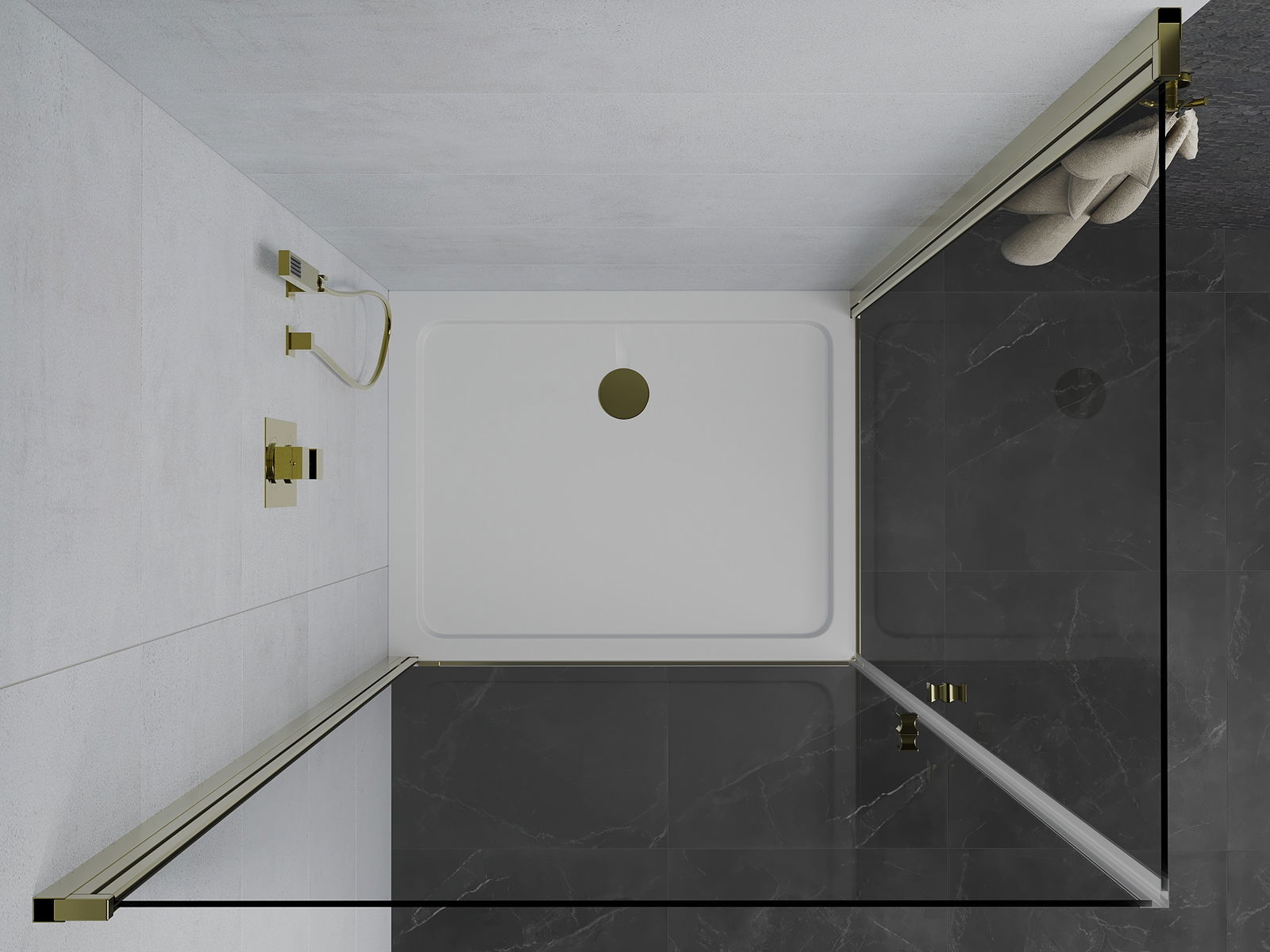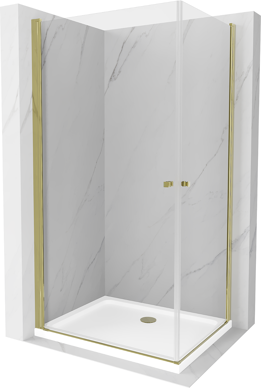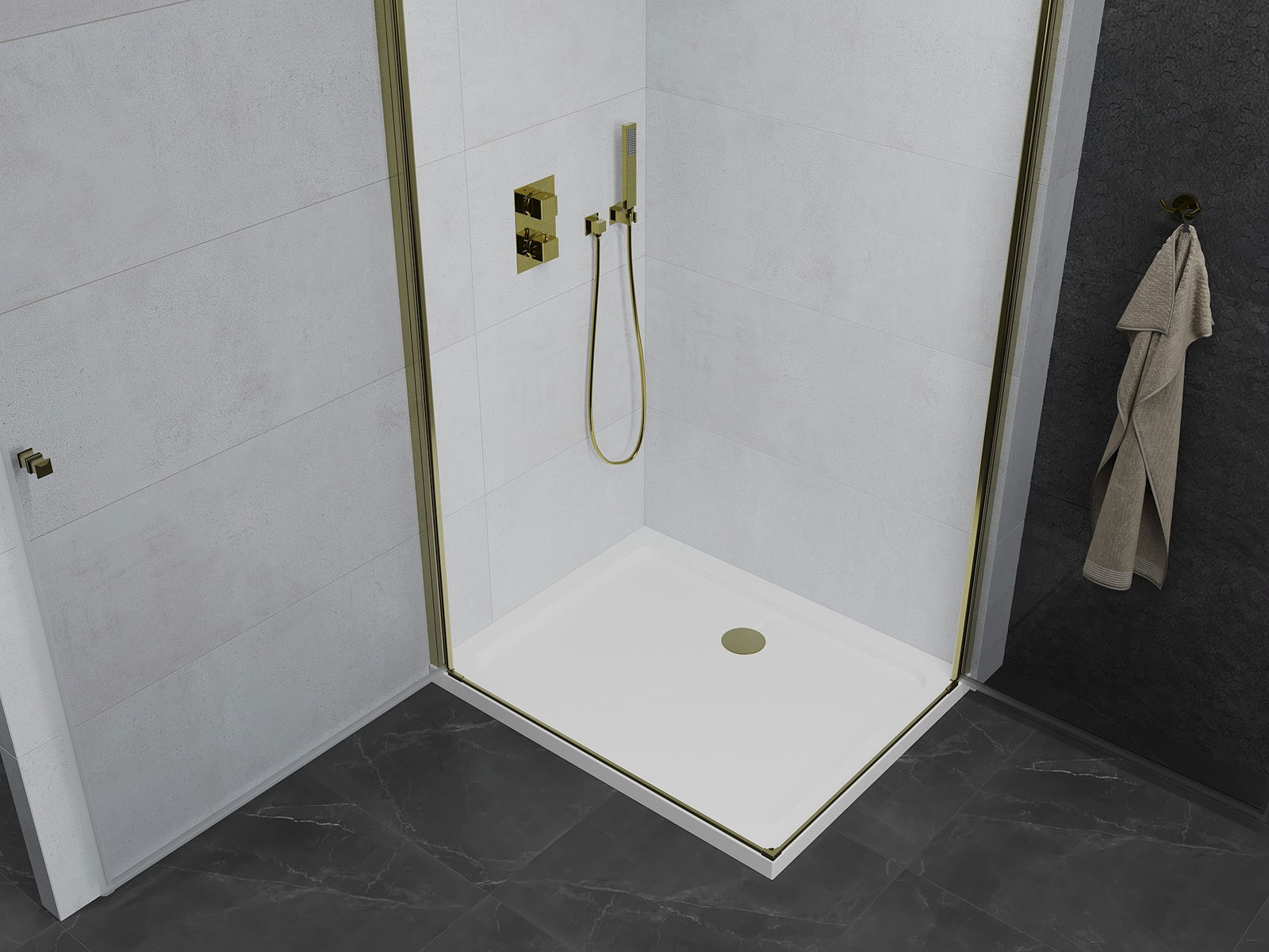 Mexen Pretoria Duo Duschkabine schwenkbar 80 x 70 cm, transparent, gold + Duschwanne Flat - 852-080-070-50-02-4010G