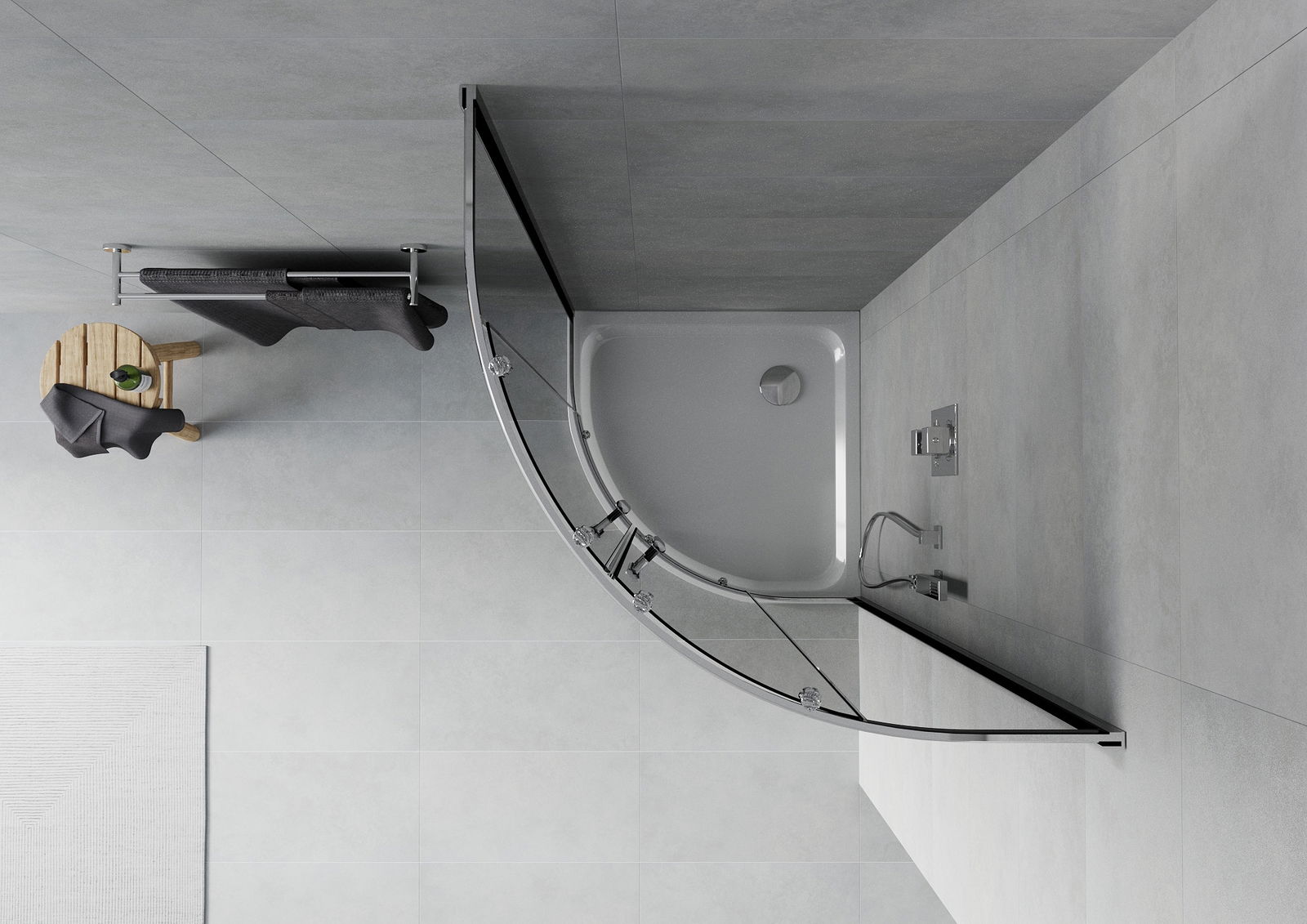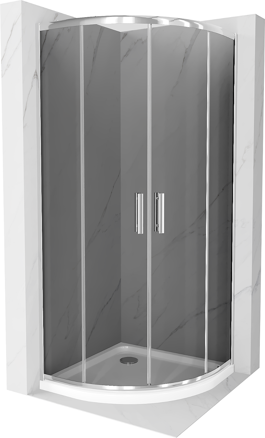 Mexen Rio Duschkabine halbkreisförmig 90 x 90 cm, Graphit, Chrom + Flat Duschwanne, weiß - 863-090-090-01-40-4110
