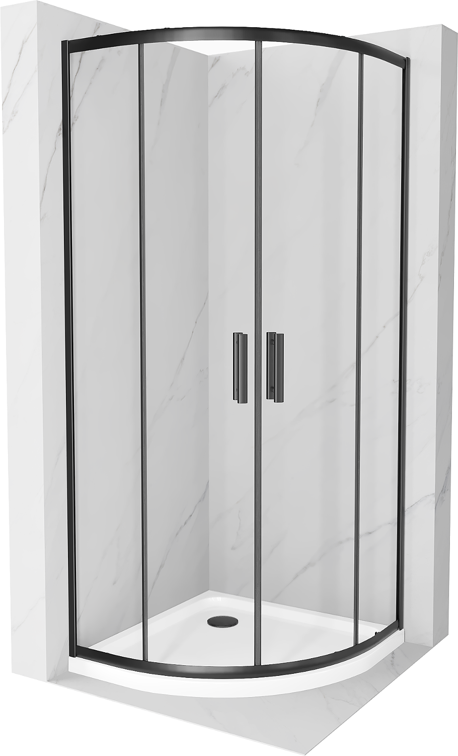 Mexen Rio Duschkabine halbkreisförmig 90 x 90 cm, transparent, schwarz + Duschtasse Flat, weiß - 863-090-090-70-00-4110B