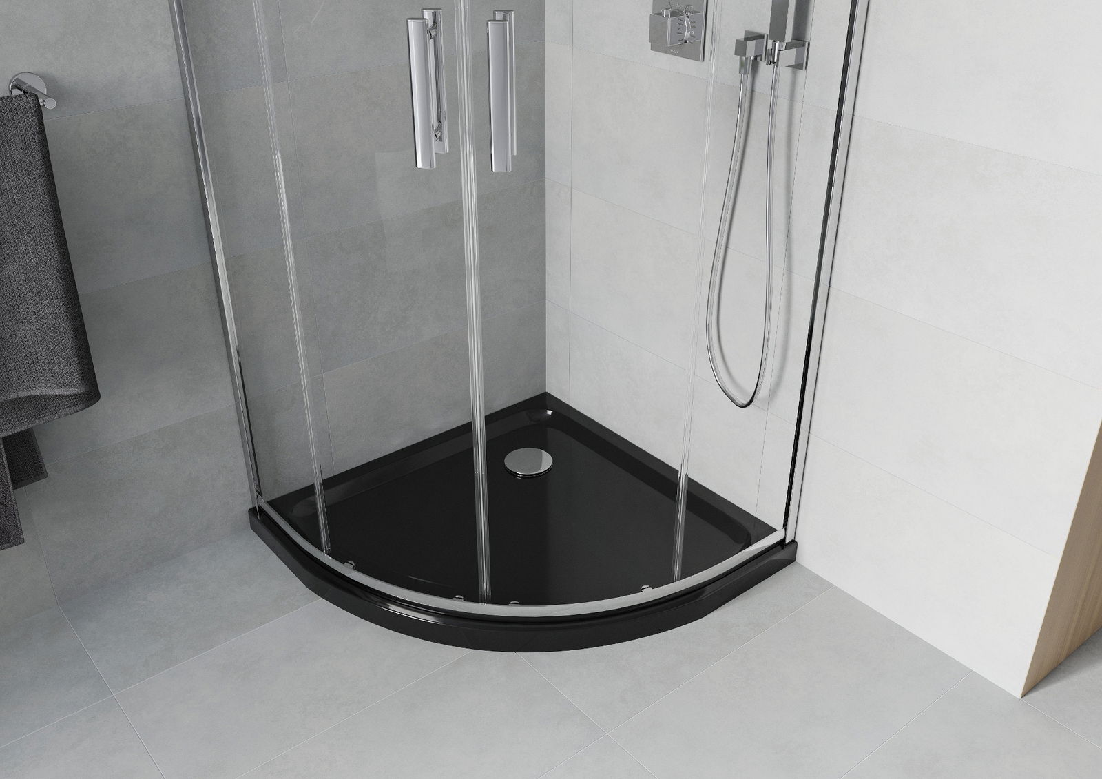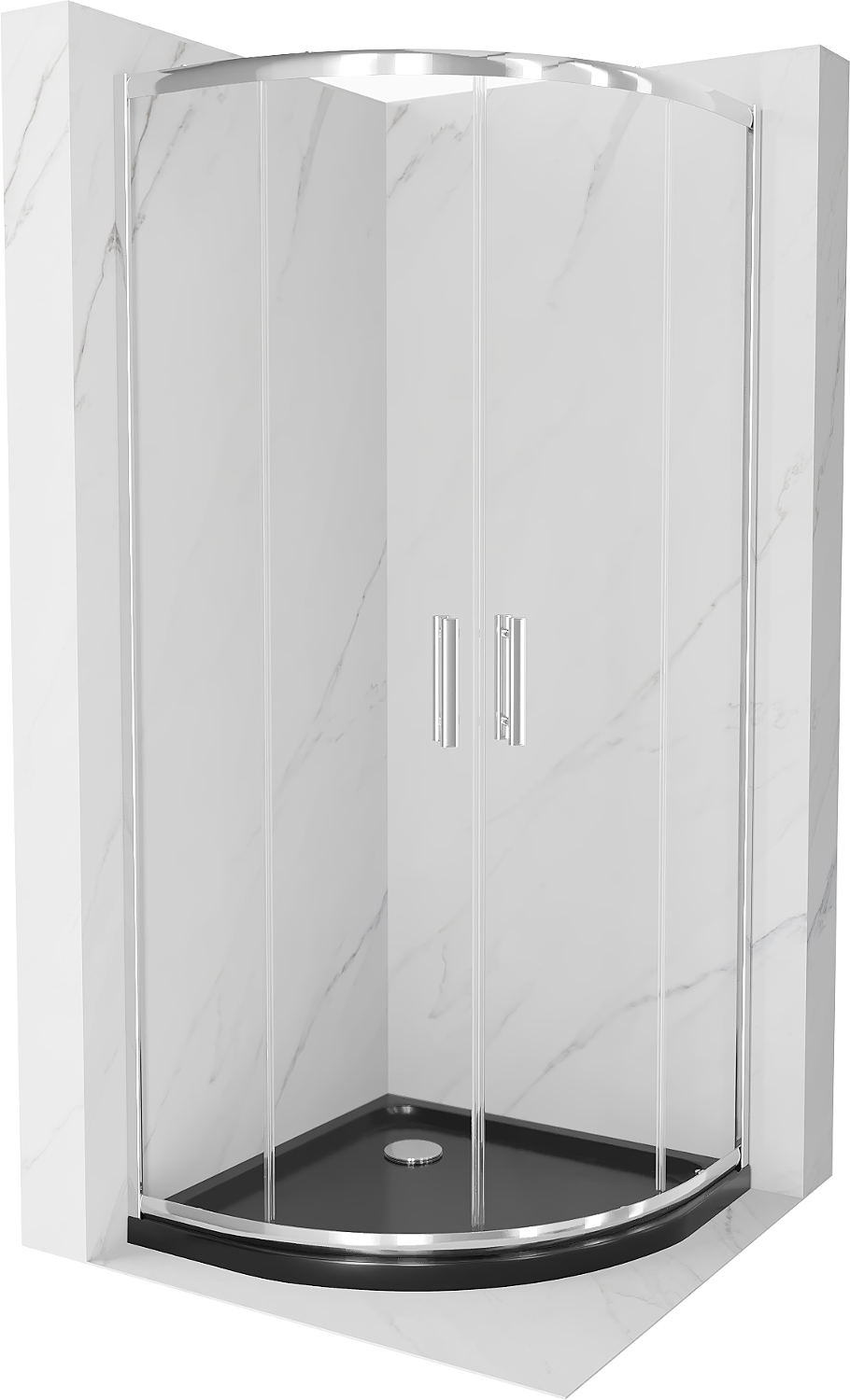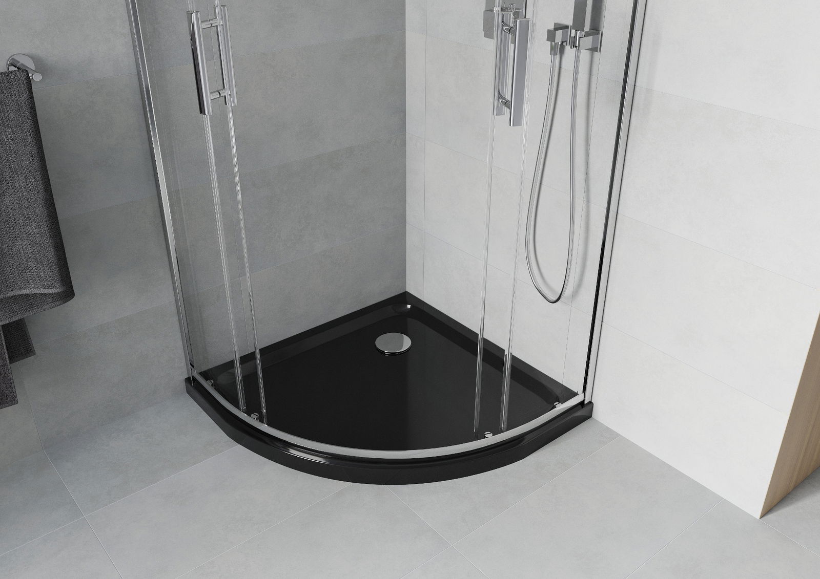 Mexen Rio Duschkabine halbrund 90 x 90 cm, transparent, chrom + Duschwanne Flat, schwarz - 863-090-090-01-00-4170