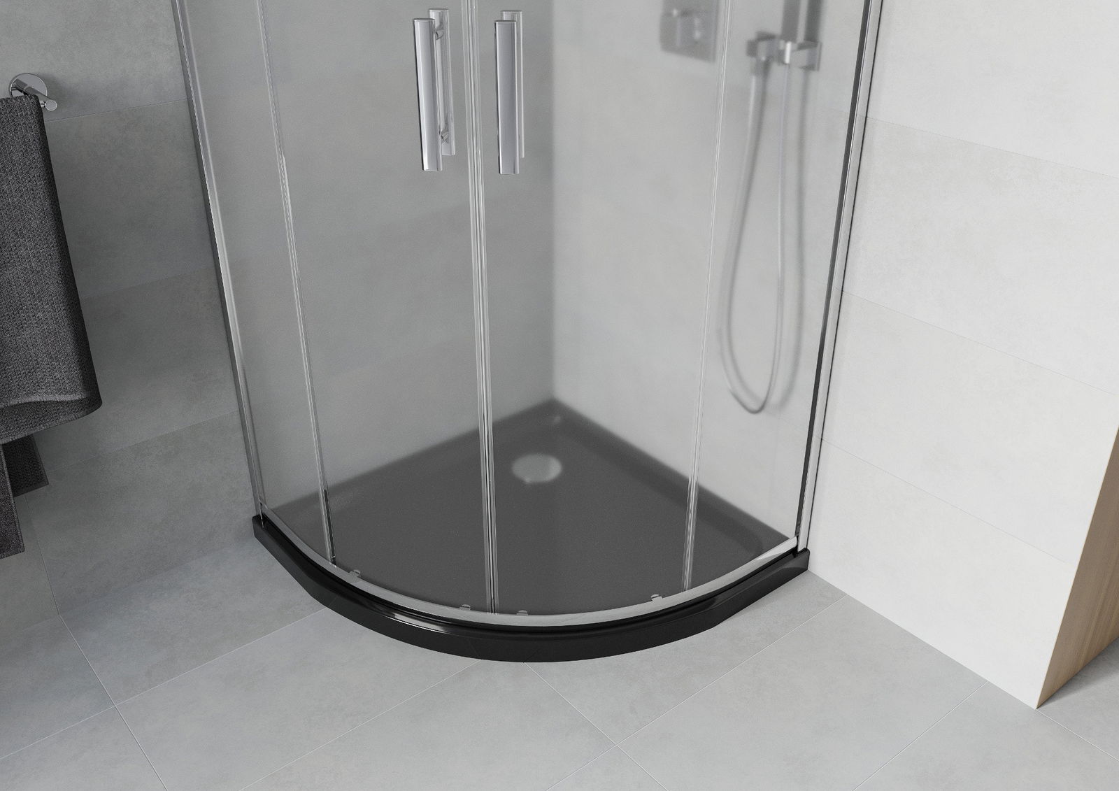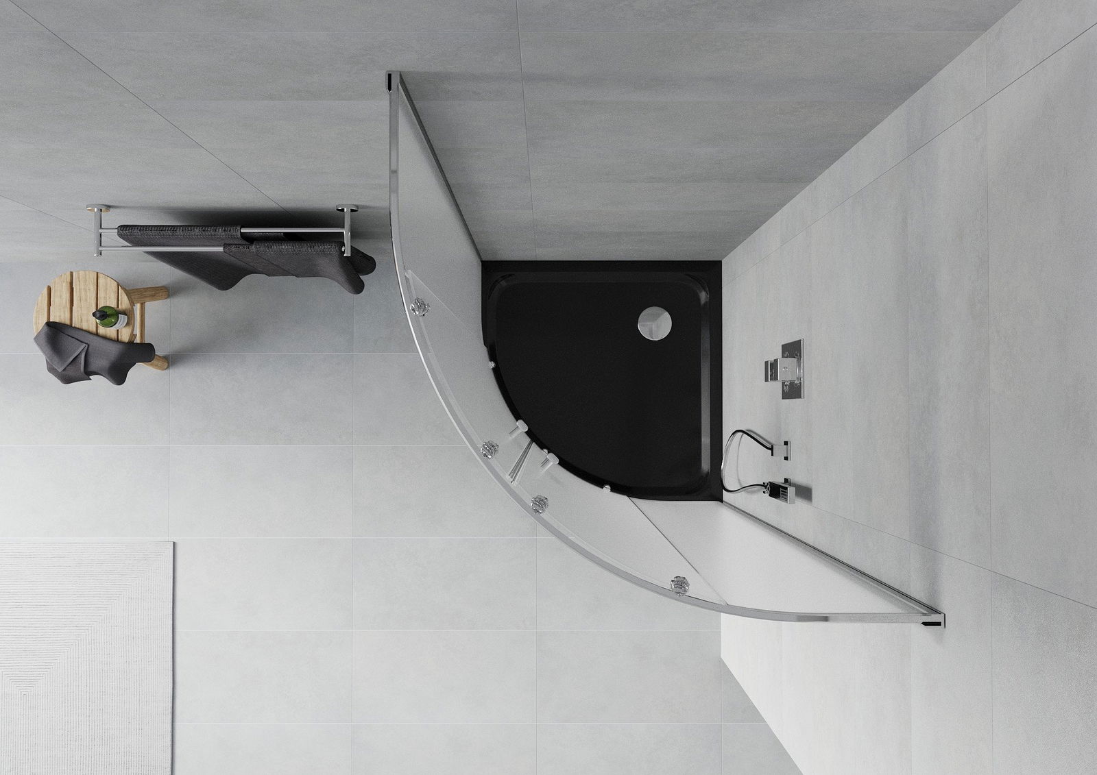 Mexen Rio Duschkabine halbrund 80 x 80 cm, Frost, Chrom + Duschwanne Flat, schwarz - 863-080-080-01-30-4170