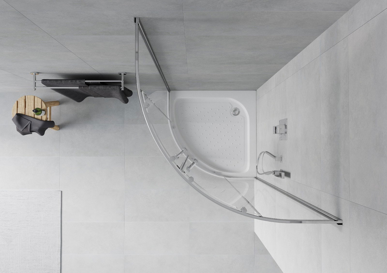 Mexen Rio Duschkabine halbrund 70 x 70 cm, transparent, Chrom + Rio Duschwanne, weiß - 863-070-070-01-00-4710