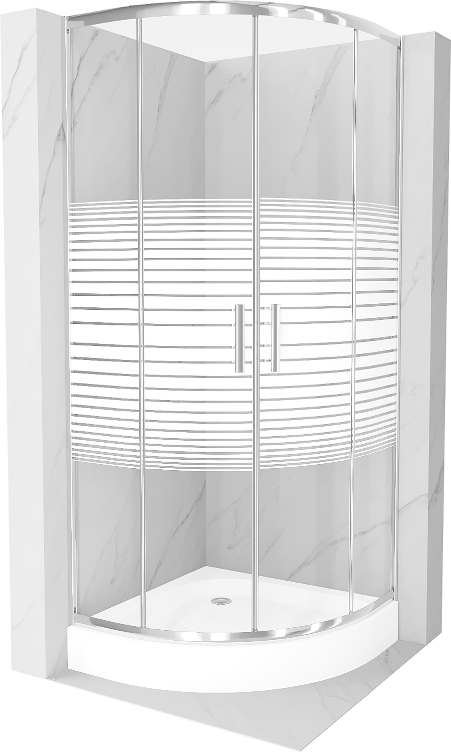 Mexen Rio Duschkabine Halbkreisförmig 70 x 70 cm, weiße Streifen, Chrom + Duschwanne Rio, Weiß - 863-070-070-01-20-4710