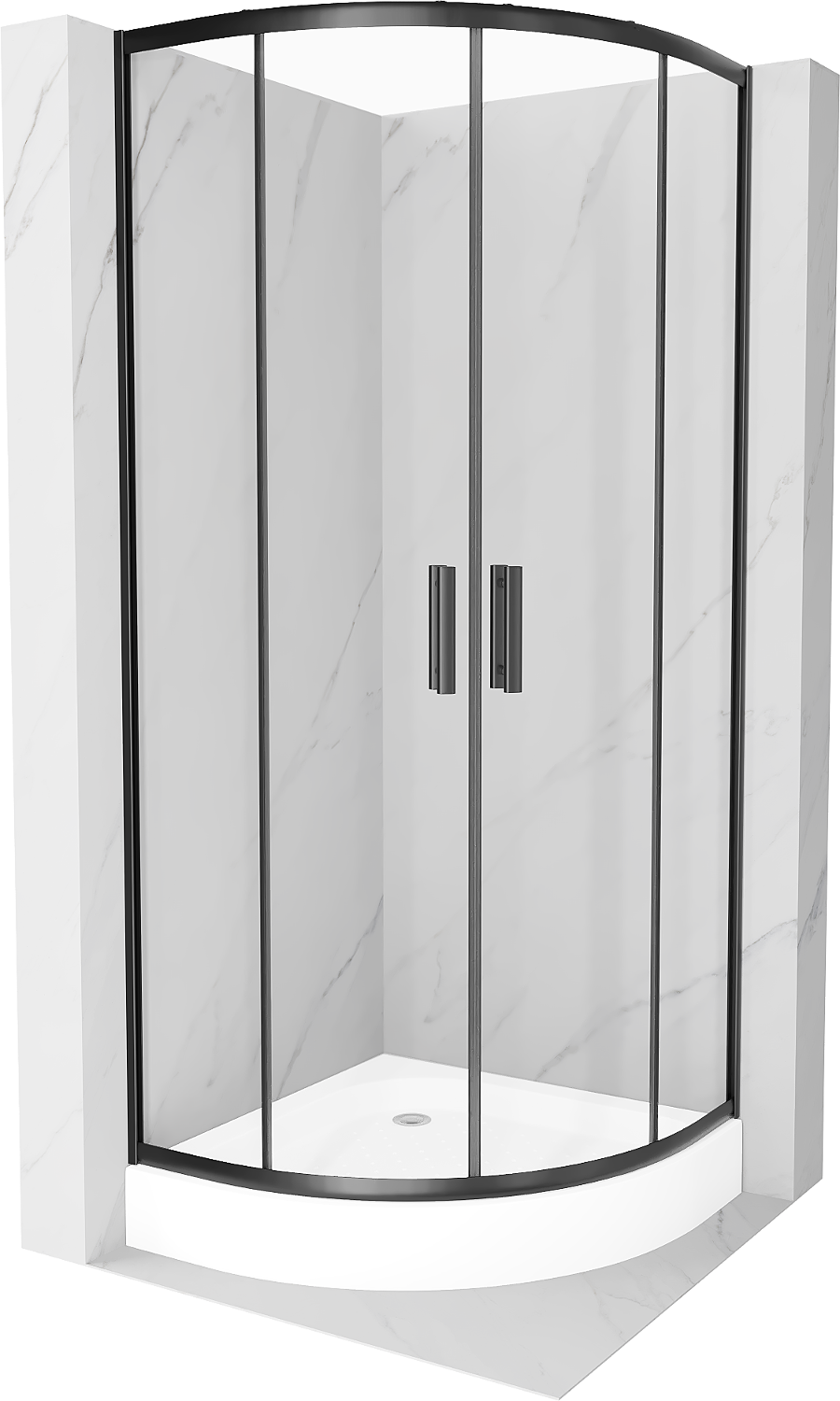Mexen Rio Duschkabine halbrund 70 x 70 cm, transparent, schwarz + Rio Duschwanne, weiß - 863-070-070-70-00-4710