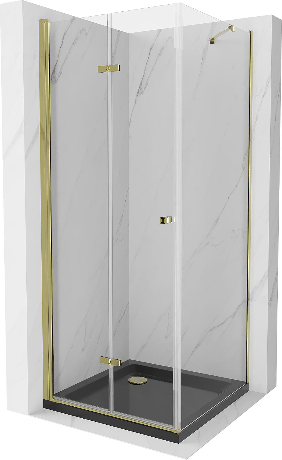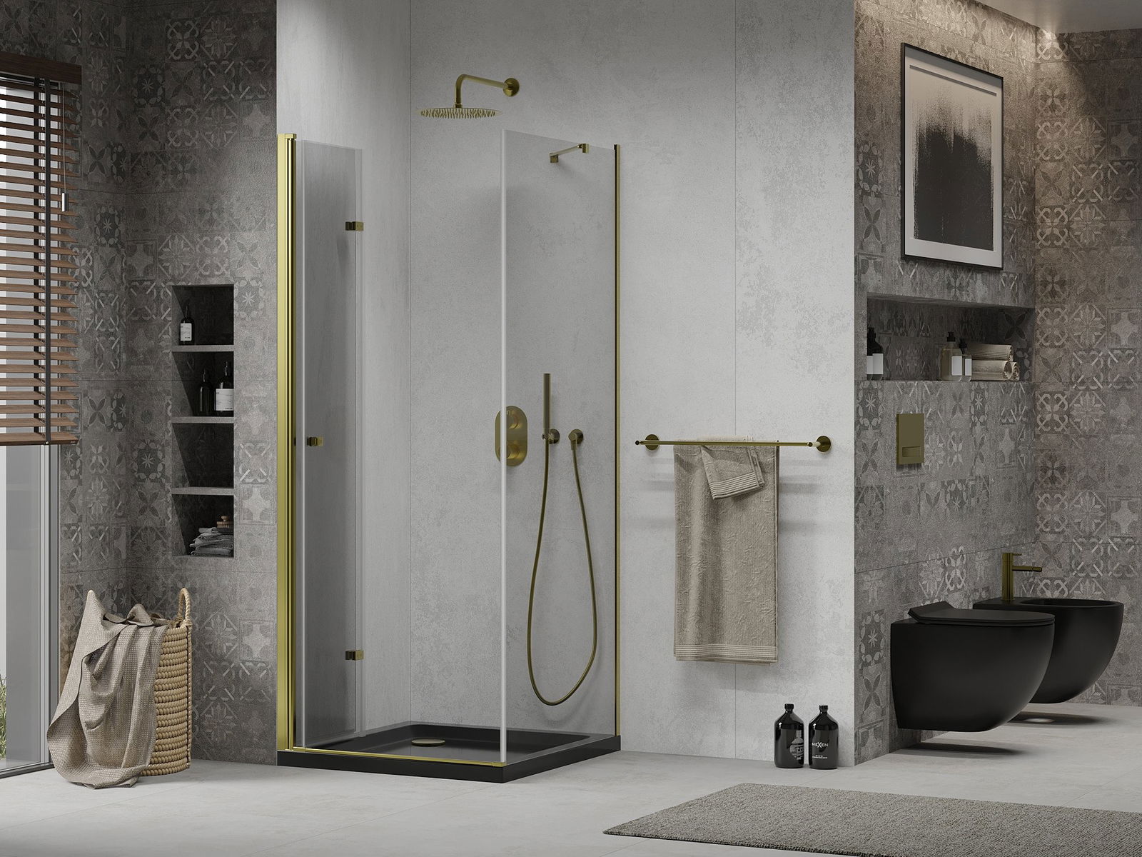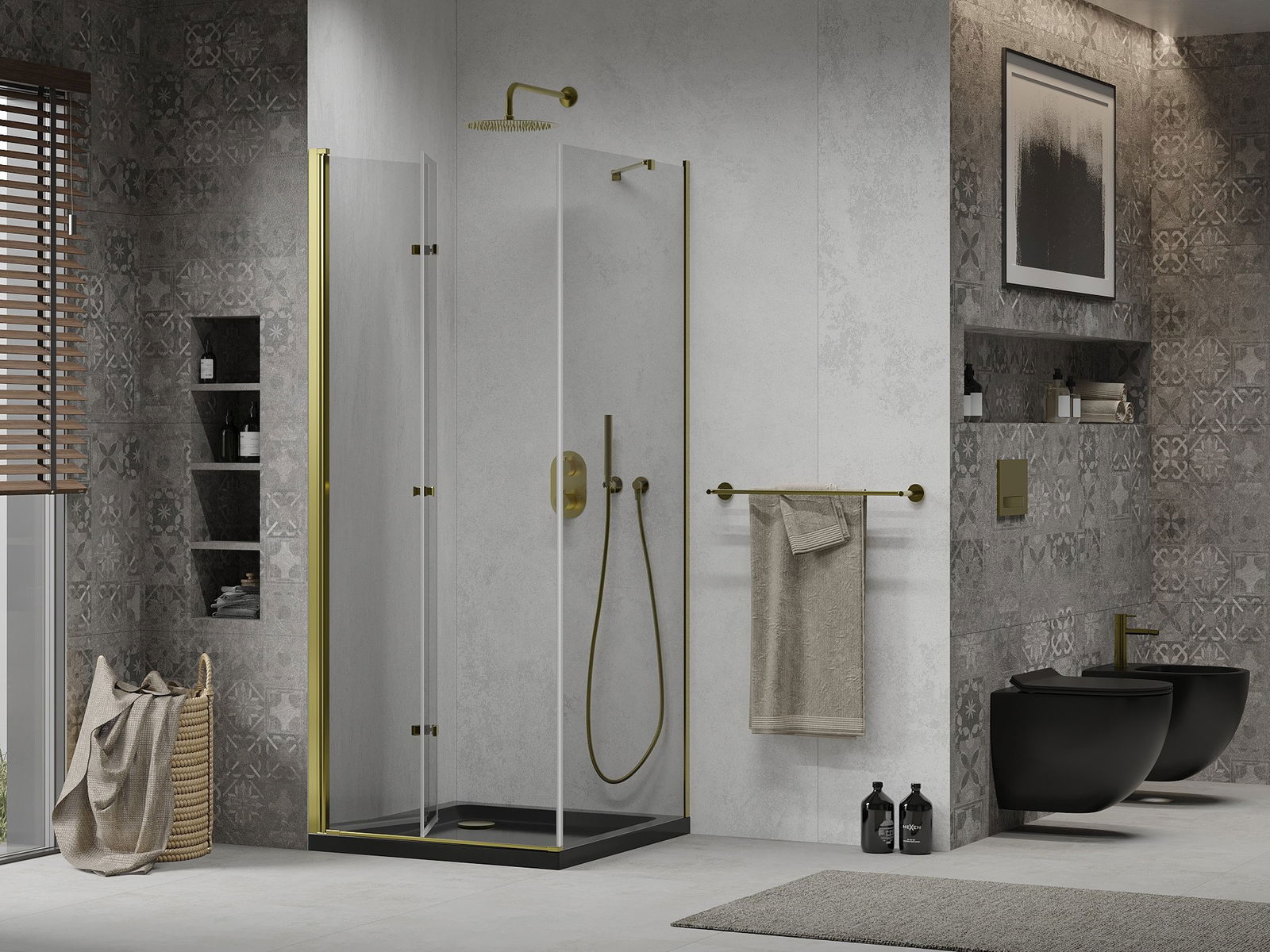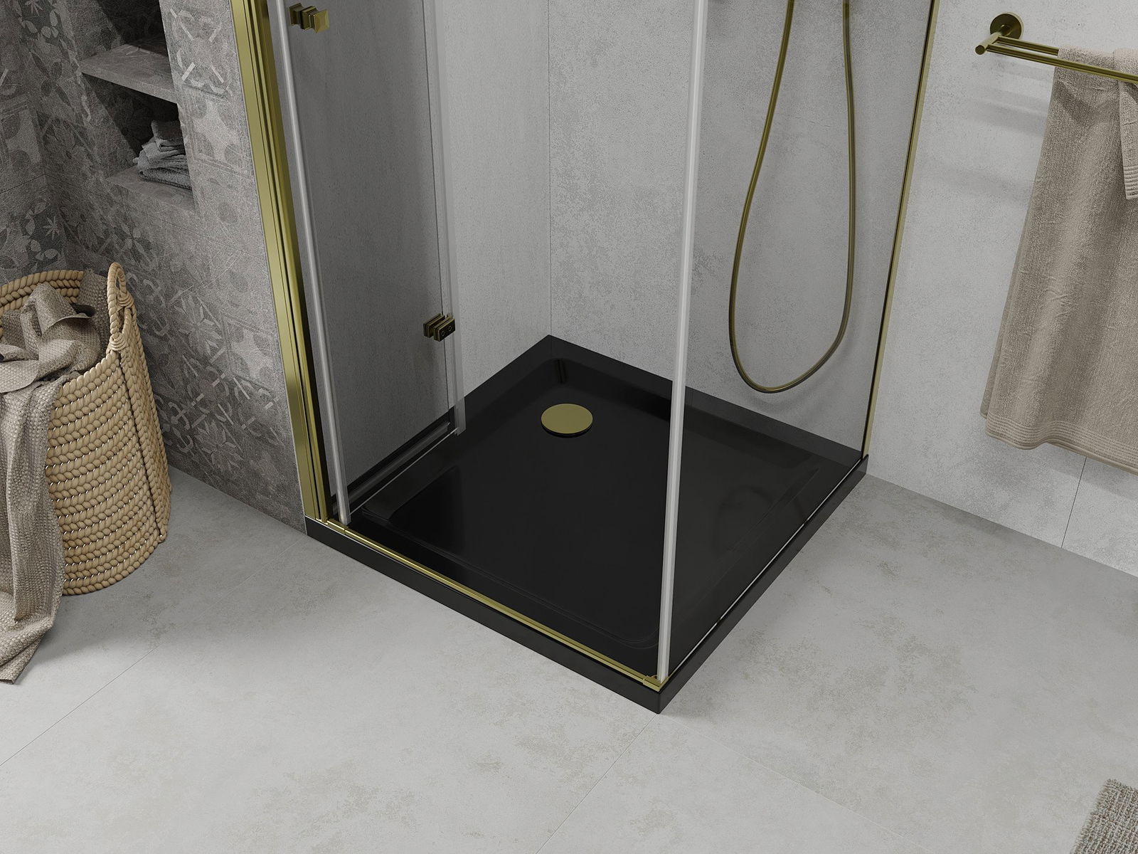 Mexen Lima faltbare Duschkabine 80 x 80 cm, transparent, gold + Flat-Duschwanne, schwarz - 856-080-080-50-00-4070G