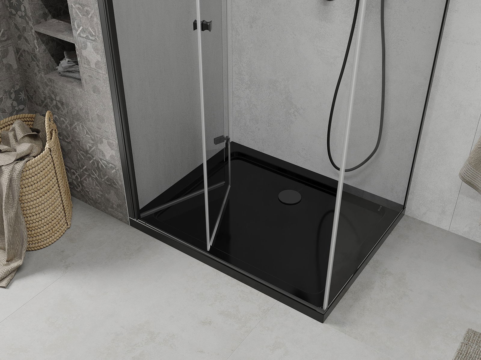 Mexen Lima Faltbare Duschkabine 80 x 120 cm, transparent, schwarz + Flat Duschwanne, schwarz - 856-080-120-70-00-4070B