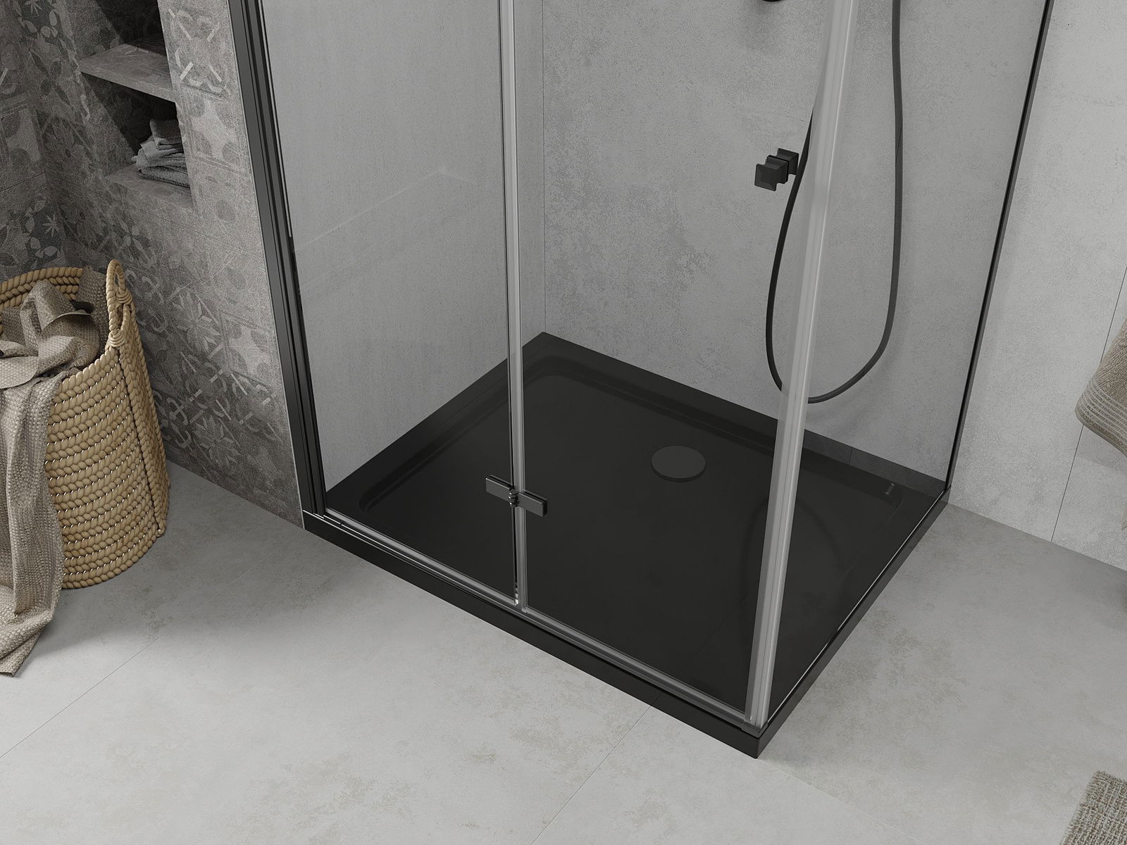Durch die Möglichkeit, die Tür sowohl außerhalb als auch innen zu falten, können Sie mehr Platz erhalten, wenn Sie die Dusche nicht verwenden. Es ist eine ideale Lösung für kleinere Badezimmer, maximal mit der verfügbaren Oberfläche.