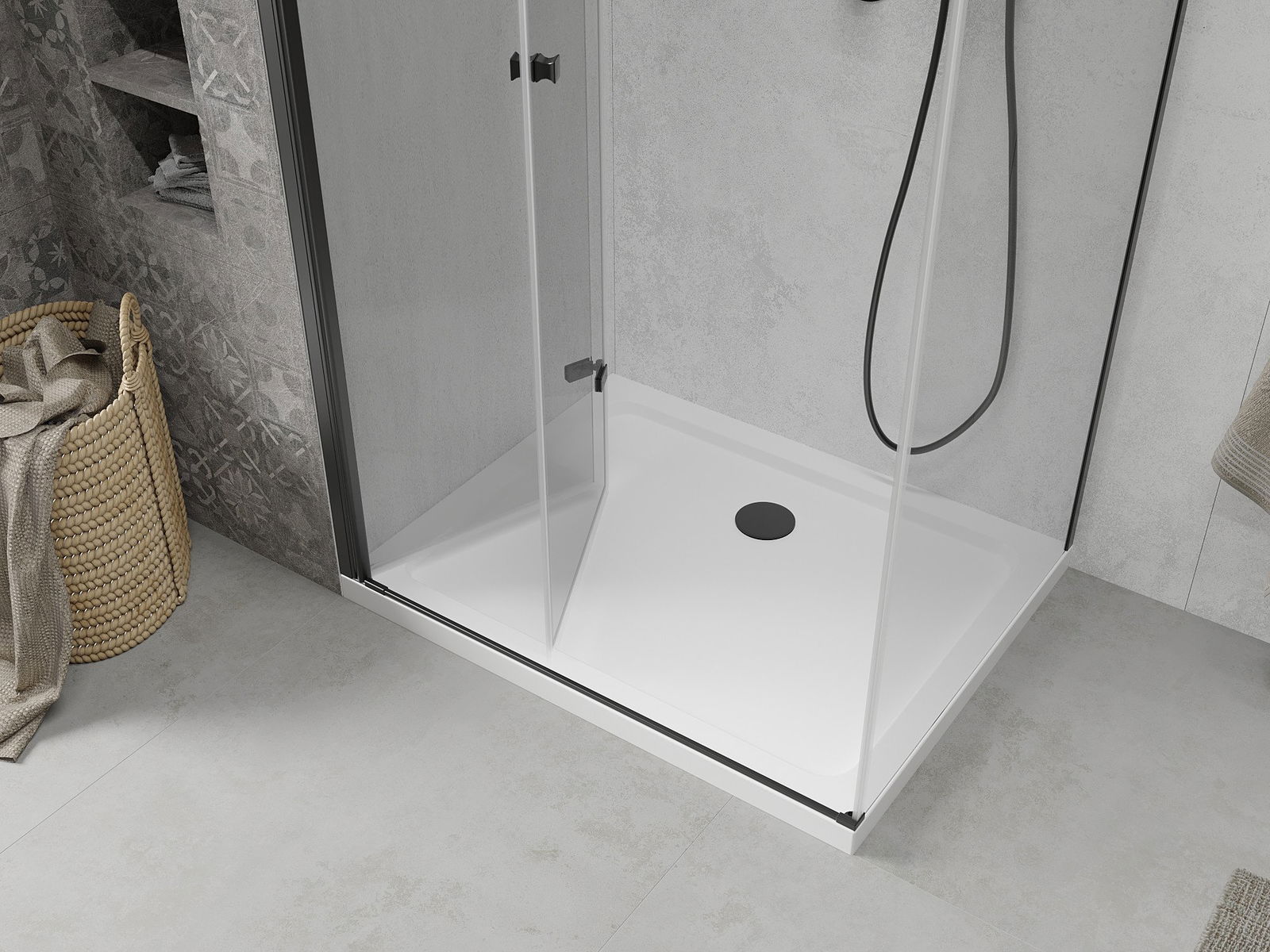 Mexen Lima faltbare Duschkabine 70 x 80 cm, transparent, schwarz + Flat Duschwanne, weiß - 856-070-080-70-00-4010B