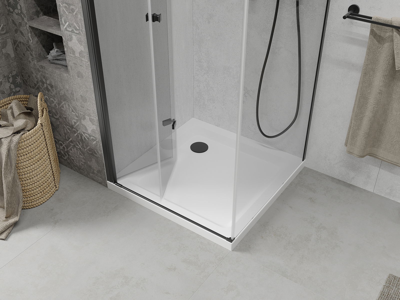 Durch die Möglichkeit, die Tür sowohl außerhalb als auch innen zu falten, können Sie mehr Platz erhalten, wenn Sie die Dusche nicht verwenden. Es ist eine ideale Lösung für kleinere Badezimmer, maximal mit der verfügbaren Oberfläche.
