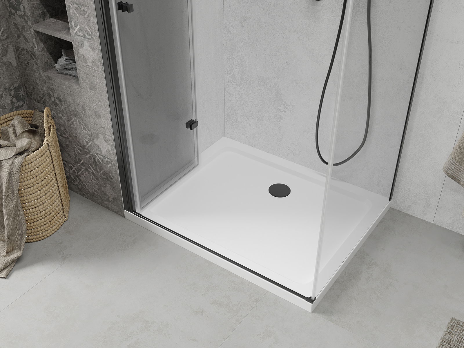 Die Duschwanne hat eine niedrige Schwelle, die das Ein- und Aussteigen aus der Dusche erleichtert. Sie verleiht dem Raum ein außergewöhnliches und zeitloses Finish, wodurch das Badezimmer zu einem komfortablen und ästhetischen Ort für tägliche Entspannung wird.