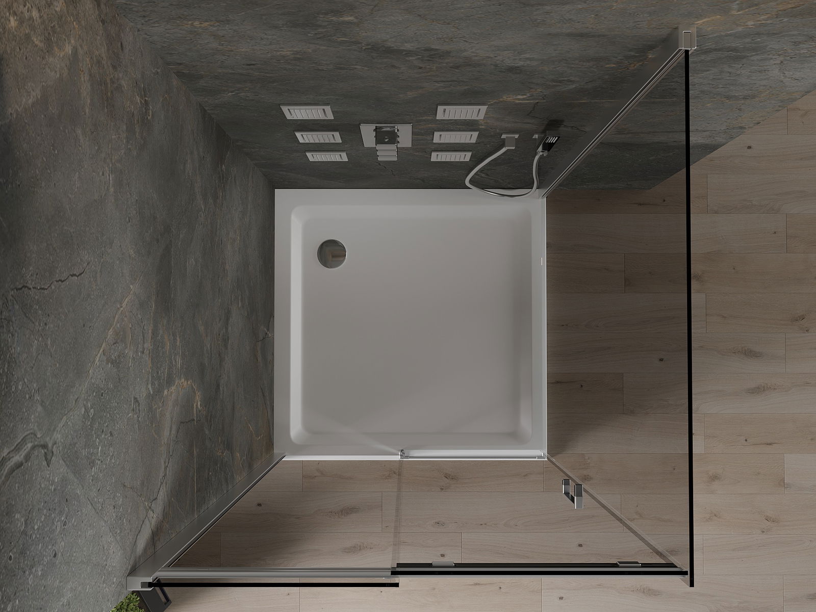 Mexen Omega Schiebeduschkabine 100 x 100 cm, Graphit, Chrom + Flat Duschwanne, weiß - 825-100-100-01-40-4010
