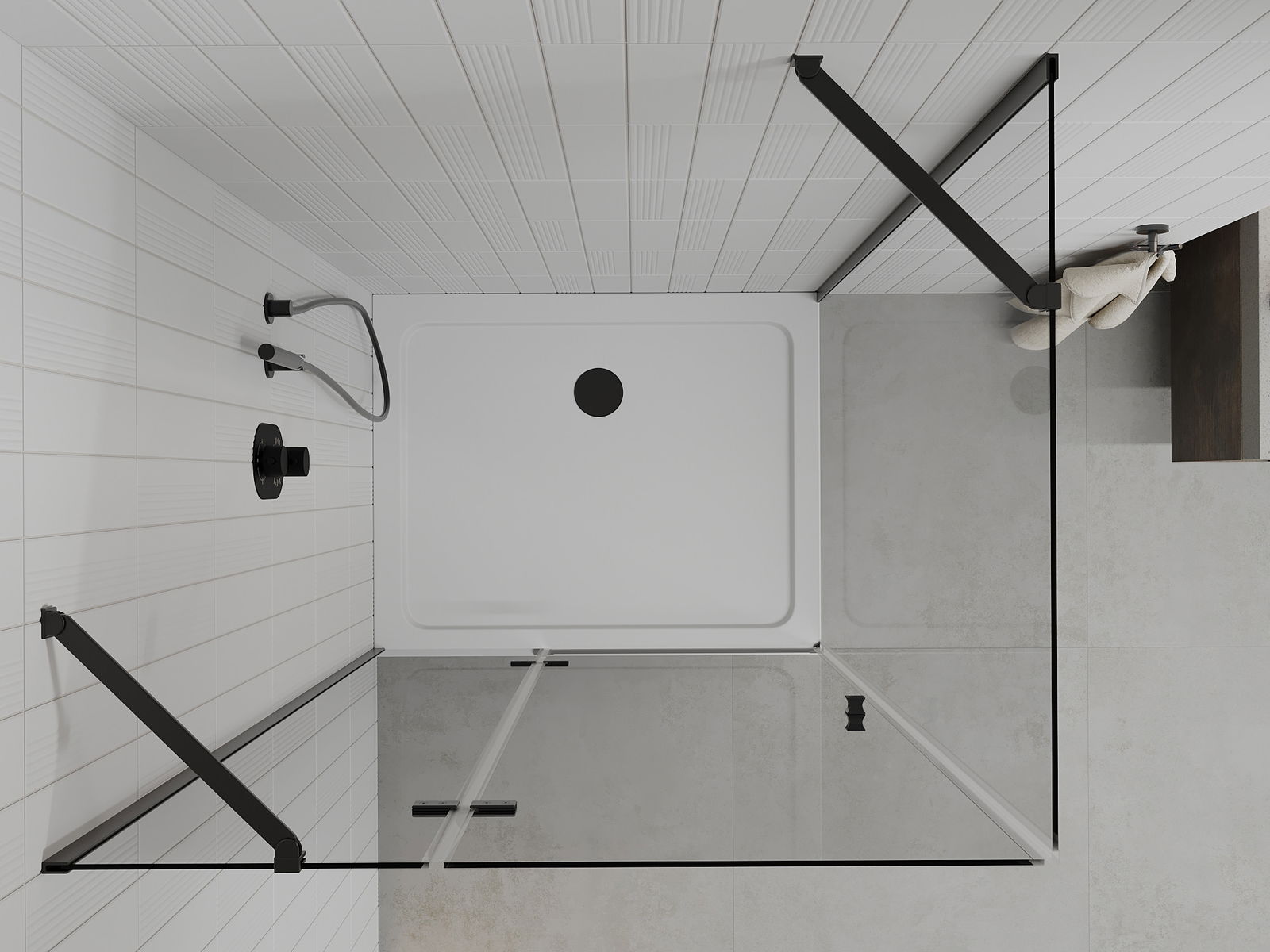 Mexen Roma Duschkabine schwenkbar 90 x 100 cm, transparent, schwarz + Duschwanne Flat, schwarz - 854-090-100-70-00-4070B