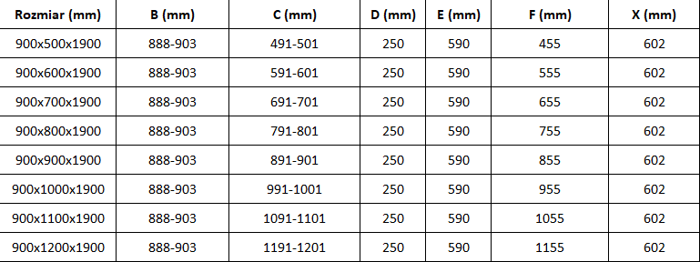 Größe: 90x100 cm (Tür 90 cm, Wand 100 cm)