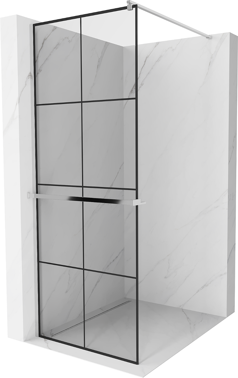 Mexen Kioto+ Duschwand mit Ablage Walk-in 80 x 200 cm, schwarzes Gitter, Chrom - 800-080-121-01-77