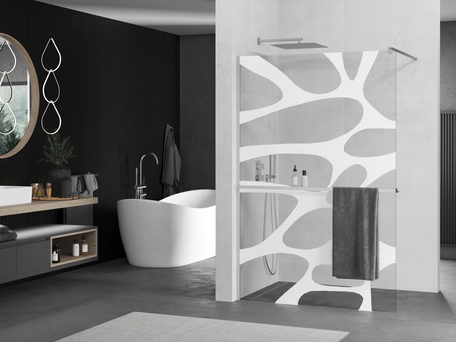 Die begehbare Duschwand ist eine ideale Lösung für Menschen mit Behinderungen. Die offene Kabine bietet einfachen Zugang und beseitigt die Notwendigkeit, Schwellenwerte und Türen zu überwinden. Die Dusche ist komfortabel und freundlich für alle.