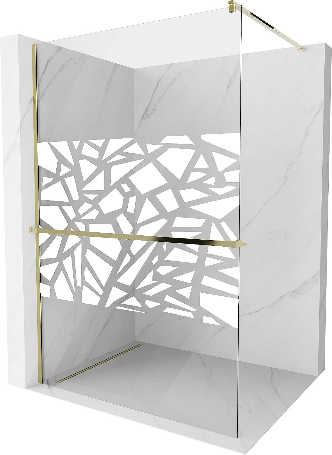Mexen Kioto+ Duschwand mit Ablage Walk-in 110 x 200 cm, weißes Muster, gold - 800-110-121-50-85