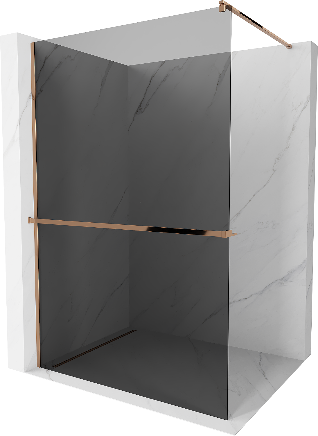 Mexen Kioto+ Duschwand mit Regal Walk-in 80 x 200 cm, Graphit, Roségold - 800-080-121-60-40