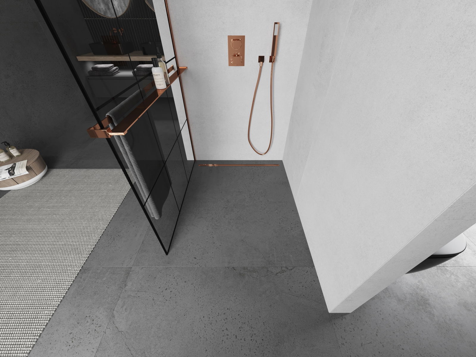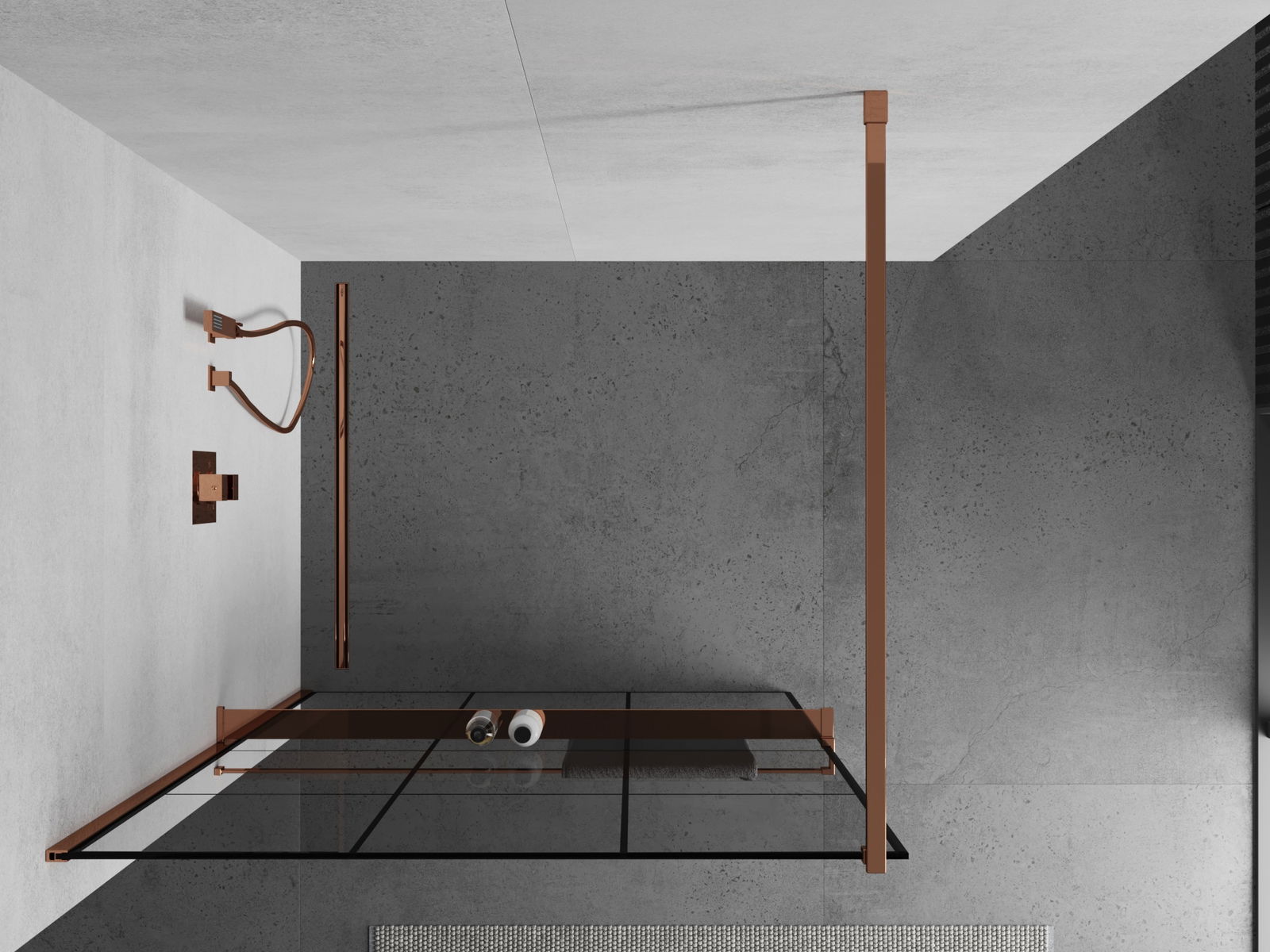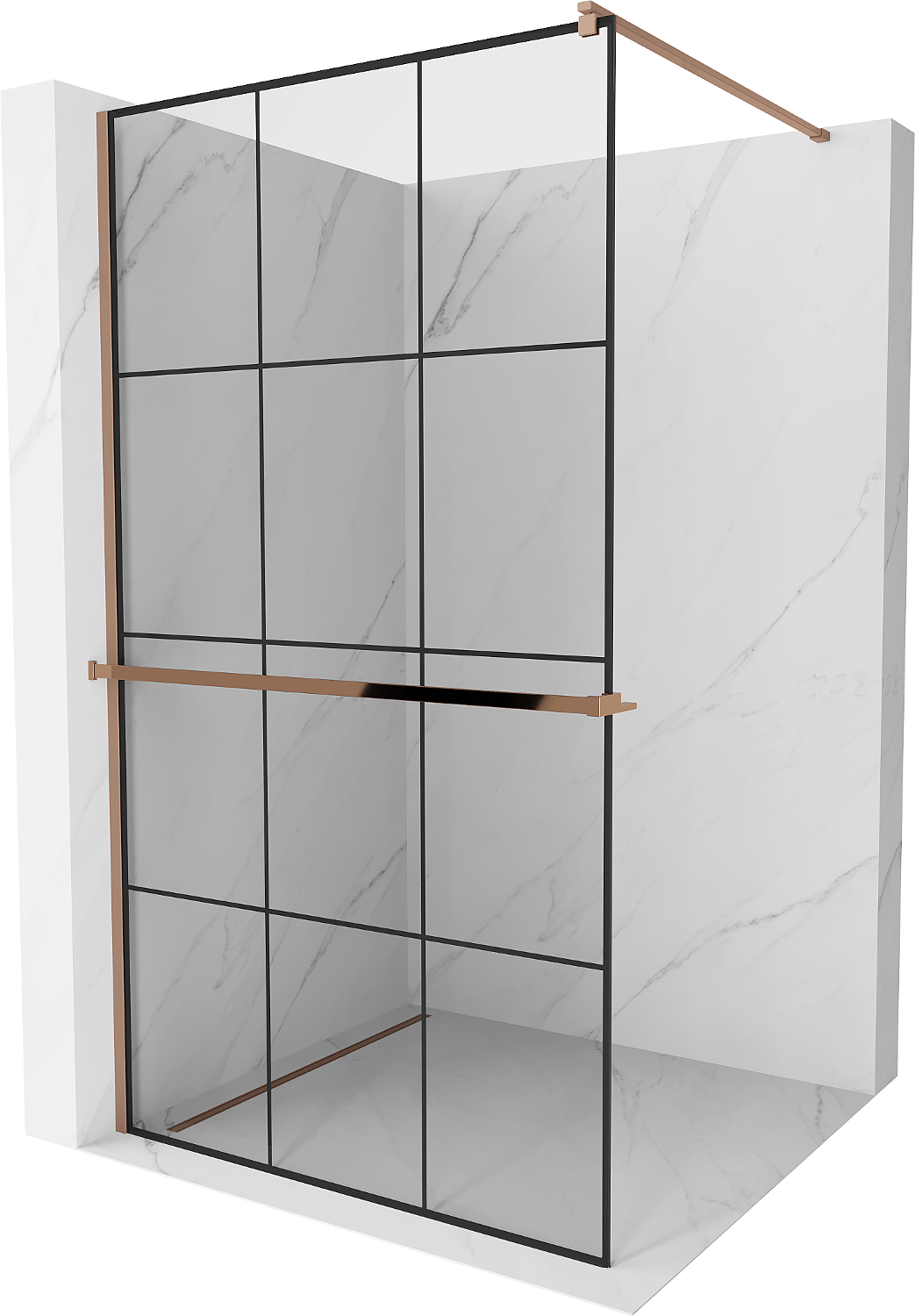 Mexen Kioto+ Duschwand mit Regal Walk-in 100 x 200 cm, schwarzes Gitter, Roségold - 800-100-121-60-77