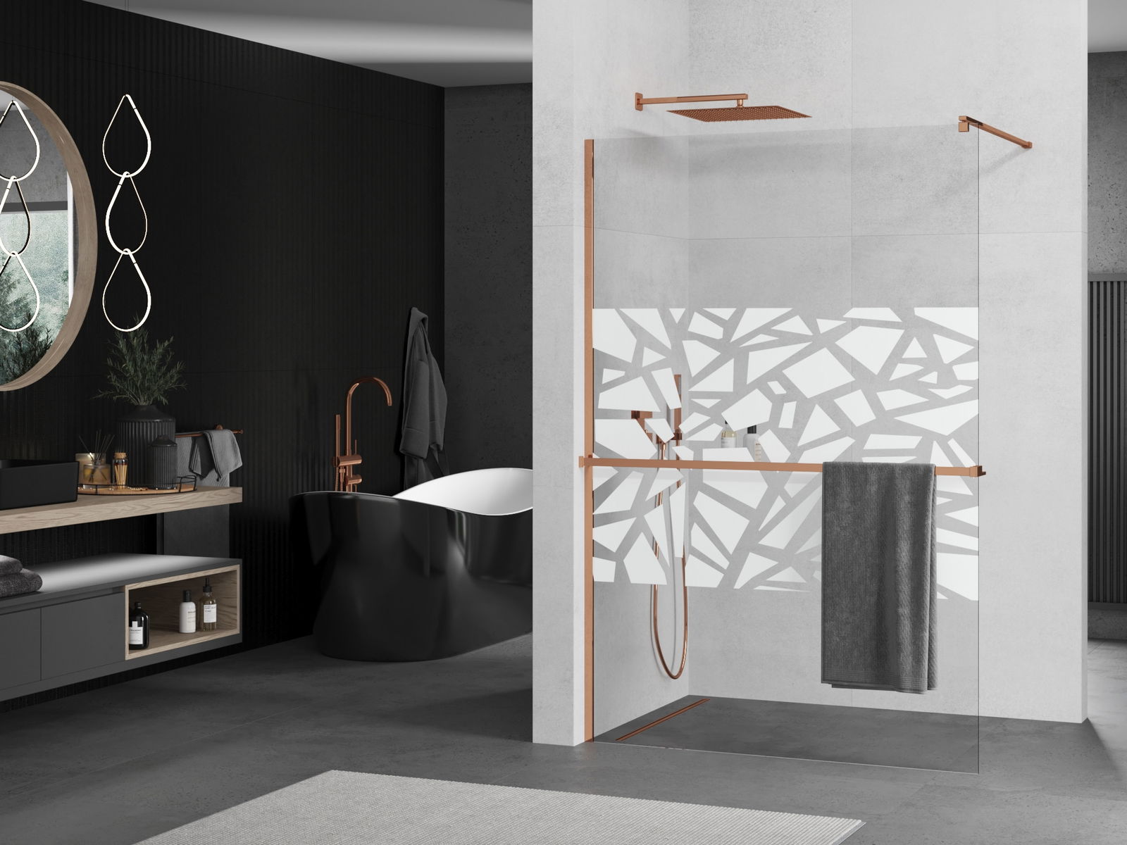 Mexen Kioto+ Duschwand mit Ablage Walk-in 80 x 200 cm, weißes Muster, Roségold - 800-080-121-60-85