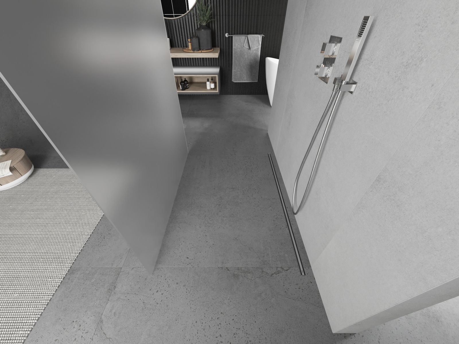 Das Produkt kann je nach Bedarf sowohl auf einer Duschwanne als auch direkt auf dem Boden montiert werden. Die universelle Montagemethode ermöglicht die Anpassung des Produkts an verschiedene Arten von Badezimmern und Raumkonfigurationen.