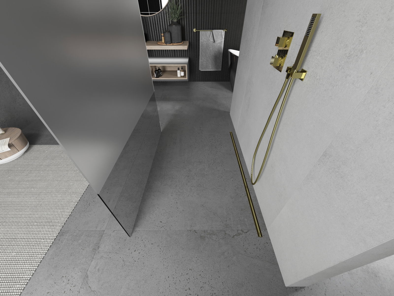 Mexen Kioto freistehende Duschwand 110 x 200 cm, transparent/frostig 8 mm, gold - 800-110-002-50-35