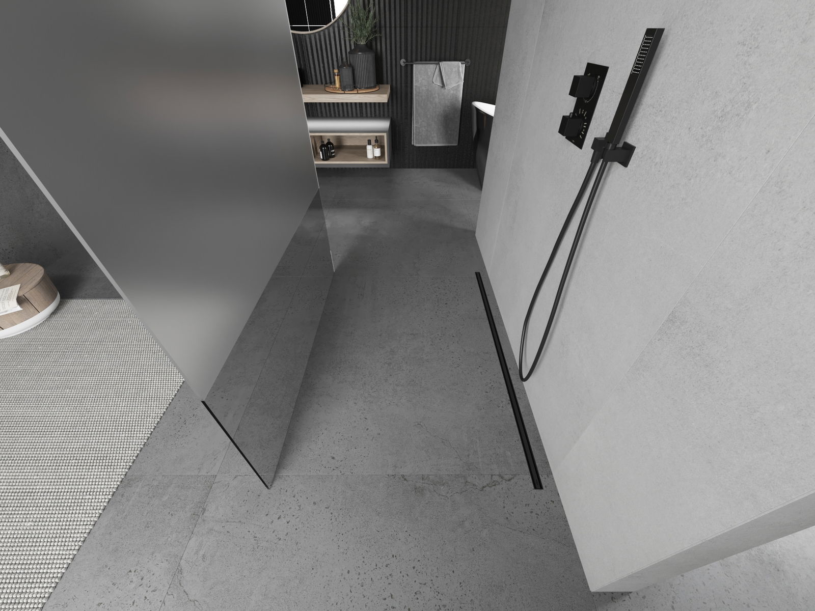 Mexen Kioto freistehende Duschwand 100 x 200 cm, transparent/matt 8 mm, schwarz - 800-100-002-70-35