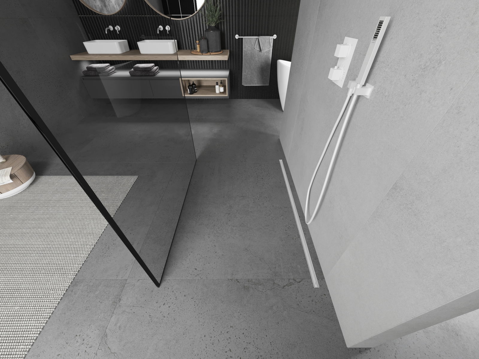 Die begehbare Duschwand ist eine ideale Lösung für Menschen mit Behinderungen. Die offene Kabine bietet einfachen Zugang und beseitigt die Notwendigkeit, Schwellenwerte und Türen zu überwinden. Die Dusche ist komfortabel und freundlich für alle.