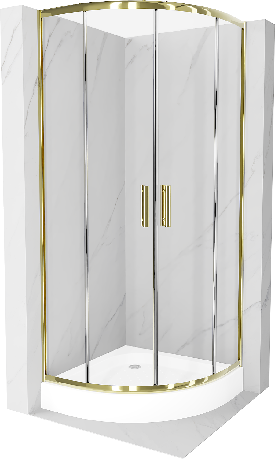 Mexen Rio halbrunde Duschkabine 80 x 80 cm, transparent, gold + Duschwanne Rio, weiß - 863-080-080-50-00-4710