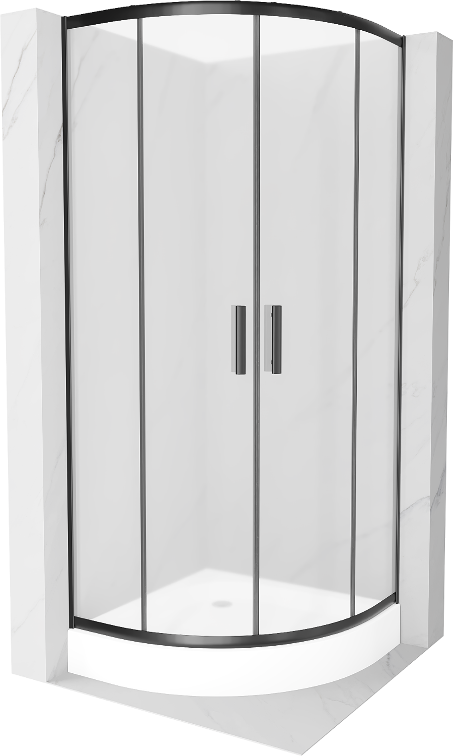 Mexen Rio Duschkabine halbrund 70 x 70 cm, mattiert, schwarz + Duschwanne Rio, weiß - 863-070-070-70-30-4710