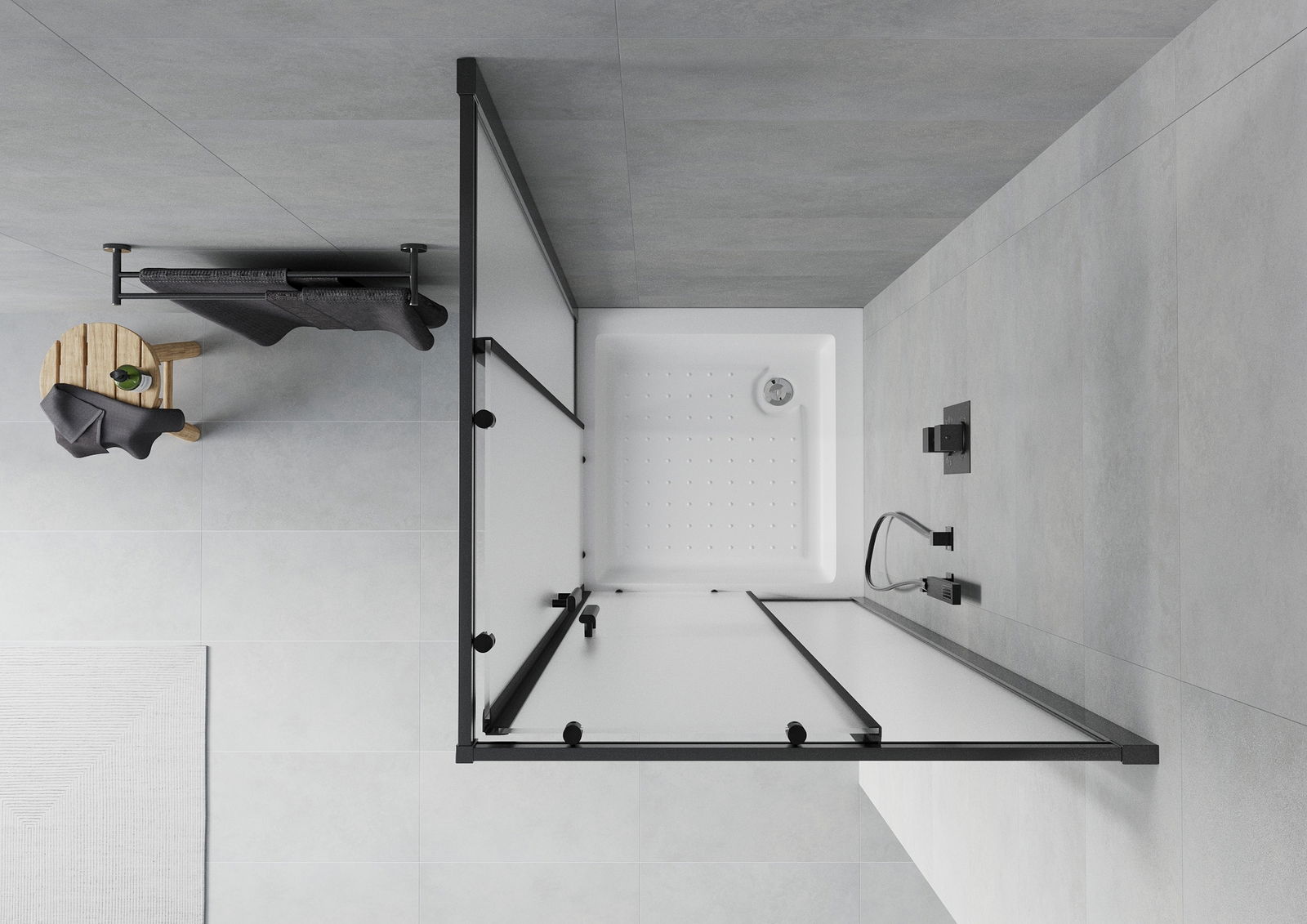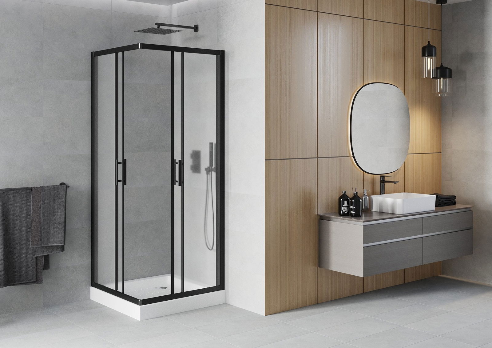 Schiebetüren bewegen sich um spezielle Führer und benötigen keinen zusätzlichen Platz, um sie zu öffnen, sodass sie in kleineren Badezimmern arbeiten. Dank doppelter Walzen aus haltbarem Kunststoff ist ihre Bewegung flüssig.