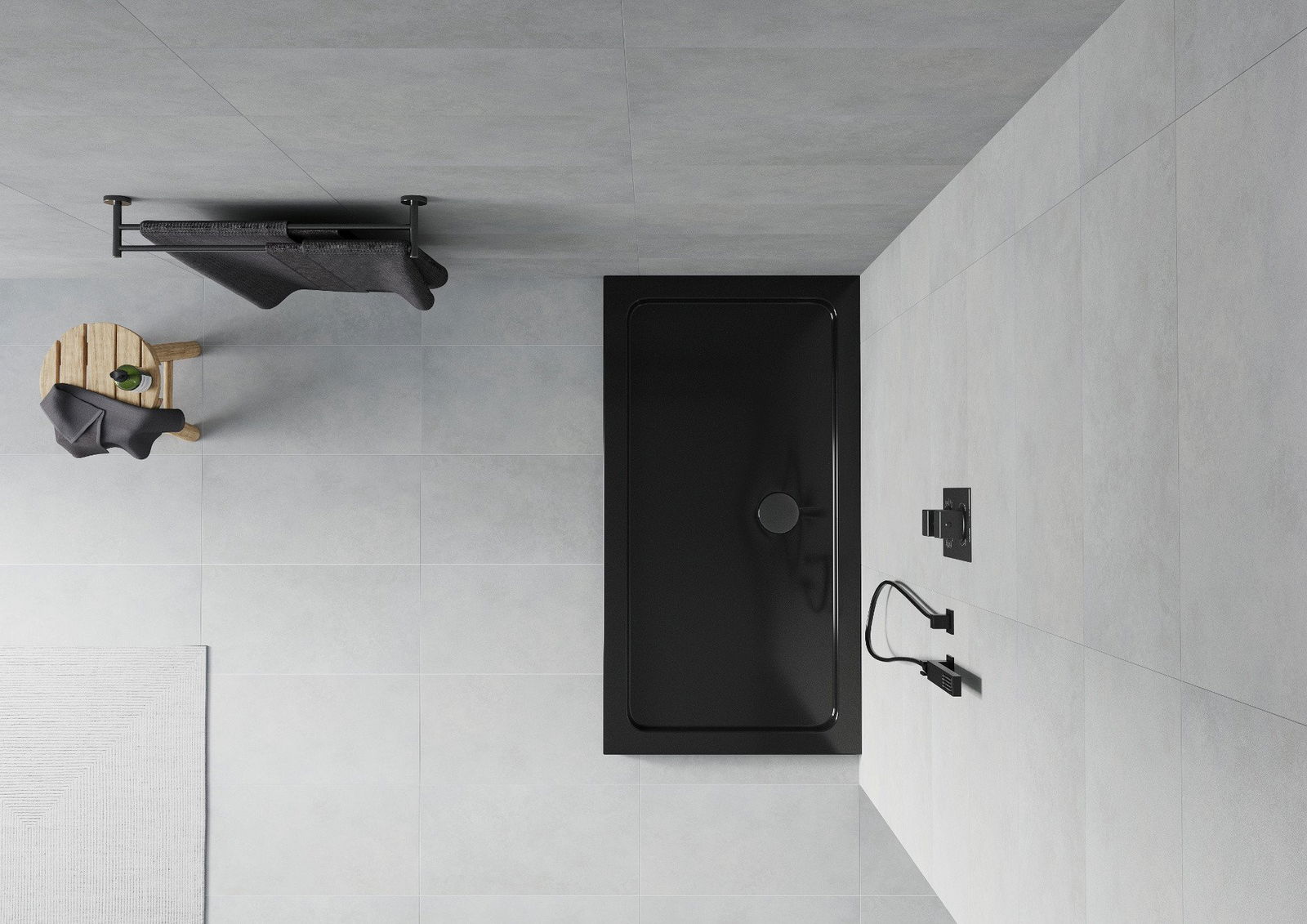 Mexen Flat rechteckige Duschwanne Slim 130 x 70 cm, schwarz, Siphon schwarz - 40707013B