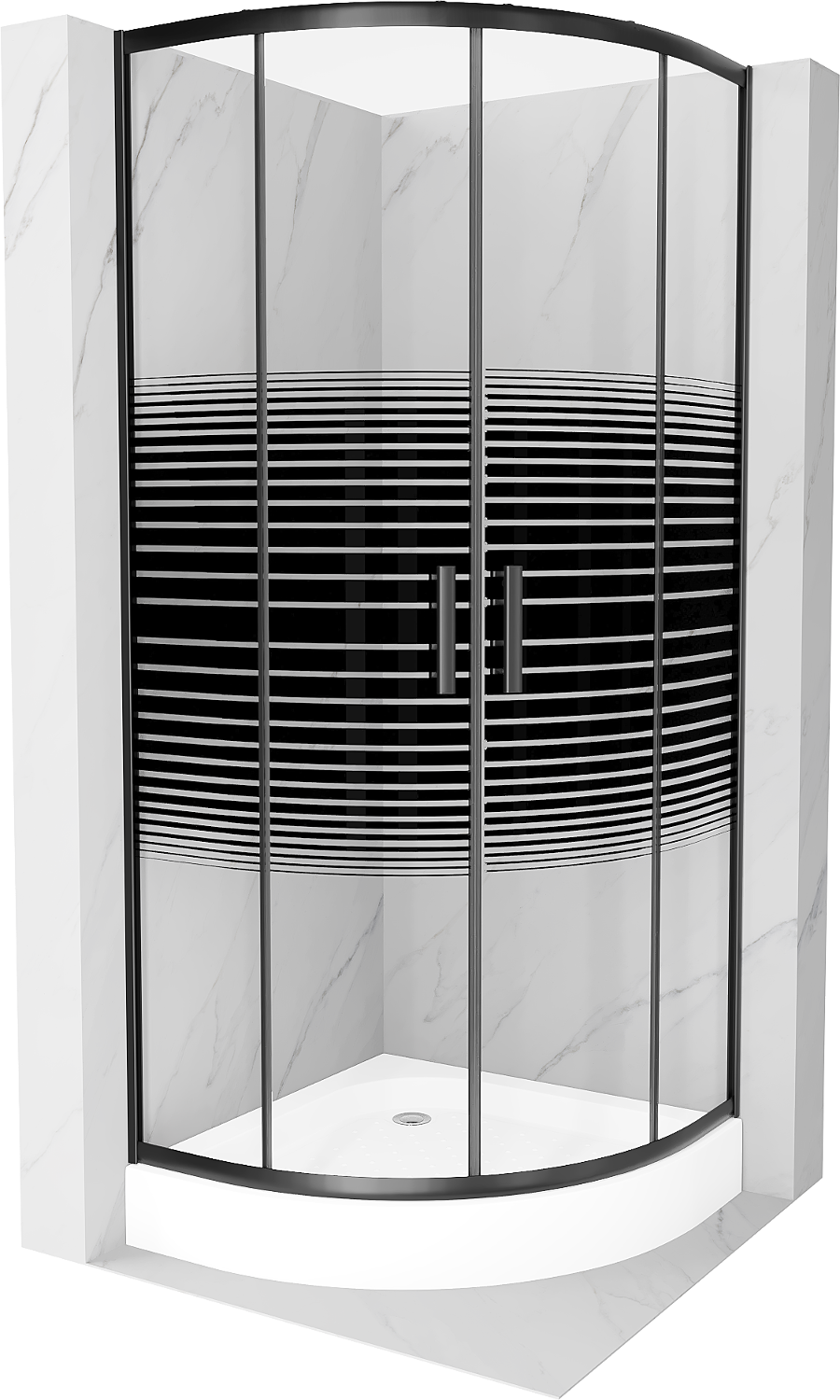 Mexen Rio Halbrunde Duschkabine 70 x 70 cm, schwarze Streifen, schwarz + Duschwanne, weiß - 863-070-070-70-20-4710