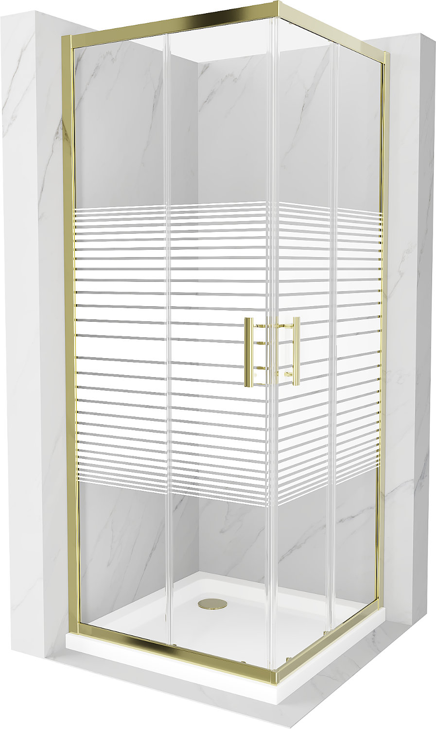 Mexen Rio Quadratische Duschkabine 90 x 90 cm, weiße Streifen, Gold + Duschwanne Flat, Weiß - 860-090-090-50-20-4010G