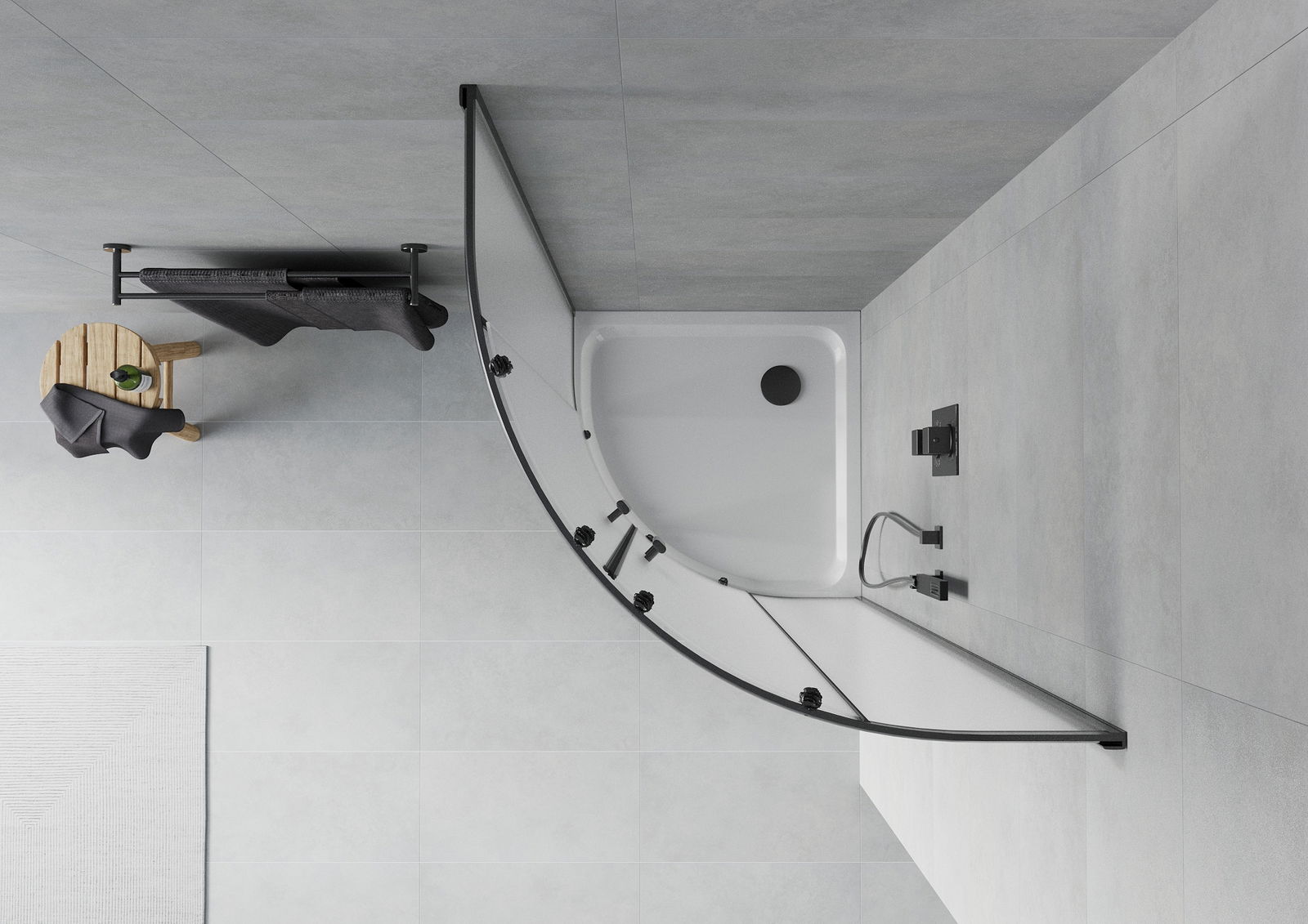 Mexen Rio Duschkabine halbrund 90 x 90 cm, matt, schwarz + Flat-Duschwanne, weiß - 863-090-090-70-30-4110B