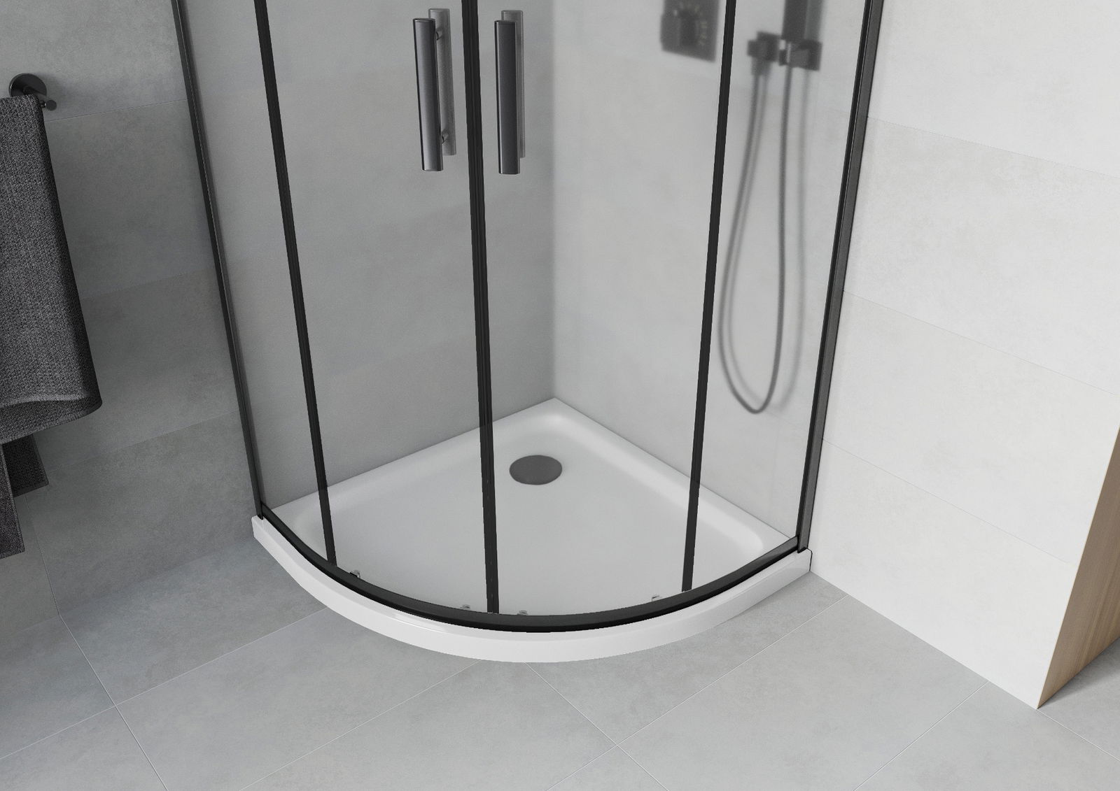 Der praktische und bequeme Griff bestand aus langlebigem und widerstandsfähigem Metall. Die modische Form in Kombination mit einem auf die Farbe der Profile zugeschnittenen Finish verleiht dem Ganzen einen modernen und stilvollen Look und betont die Ästhetik jedes Badezimmers.