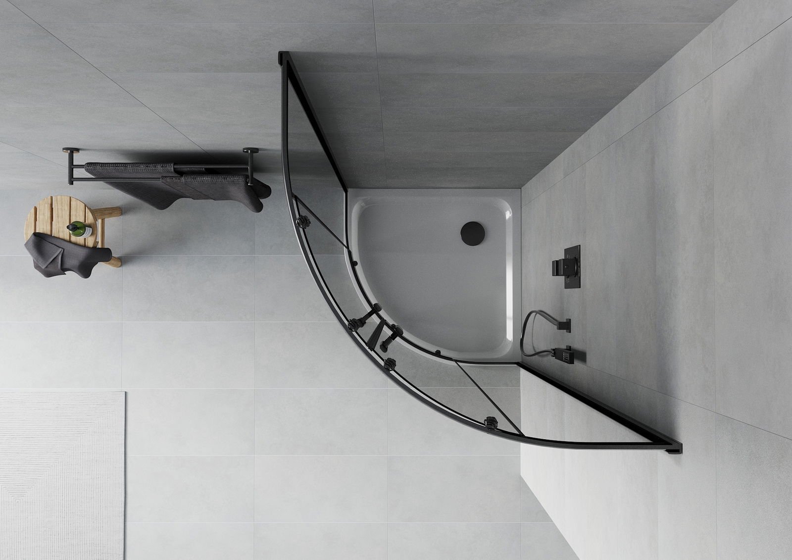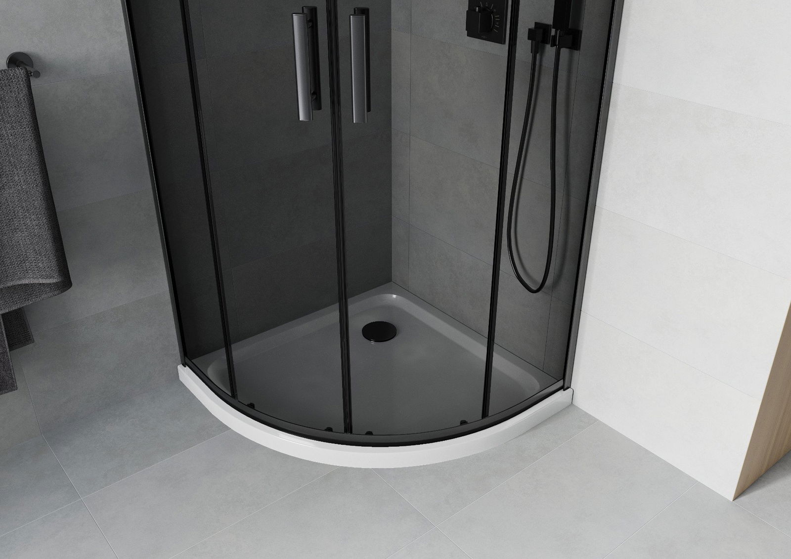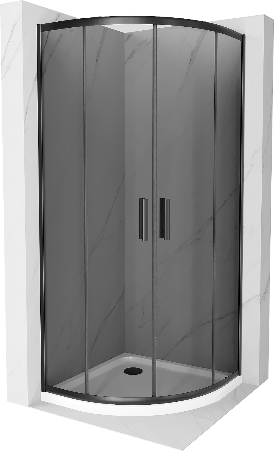 Mexen Rio halbkreisförmige Duschkabine 80 x 80 cm, Graphit, Schwarz + Flat Duschwanne, Weiß - 863-080-080-70-40-4110B