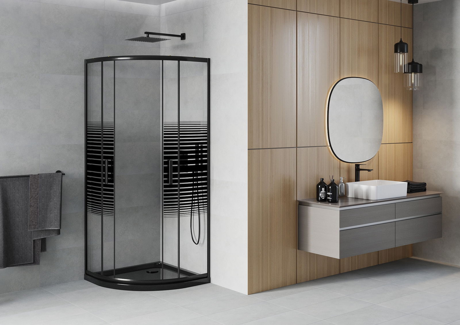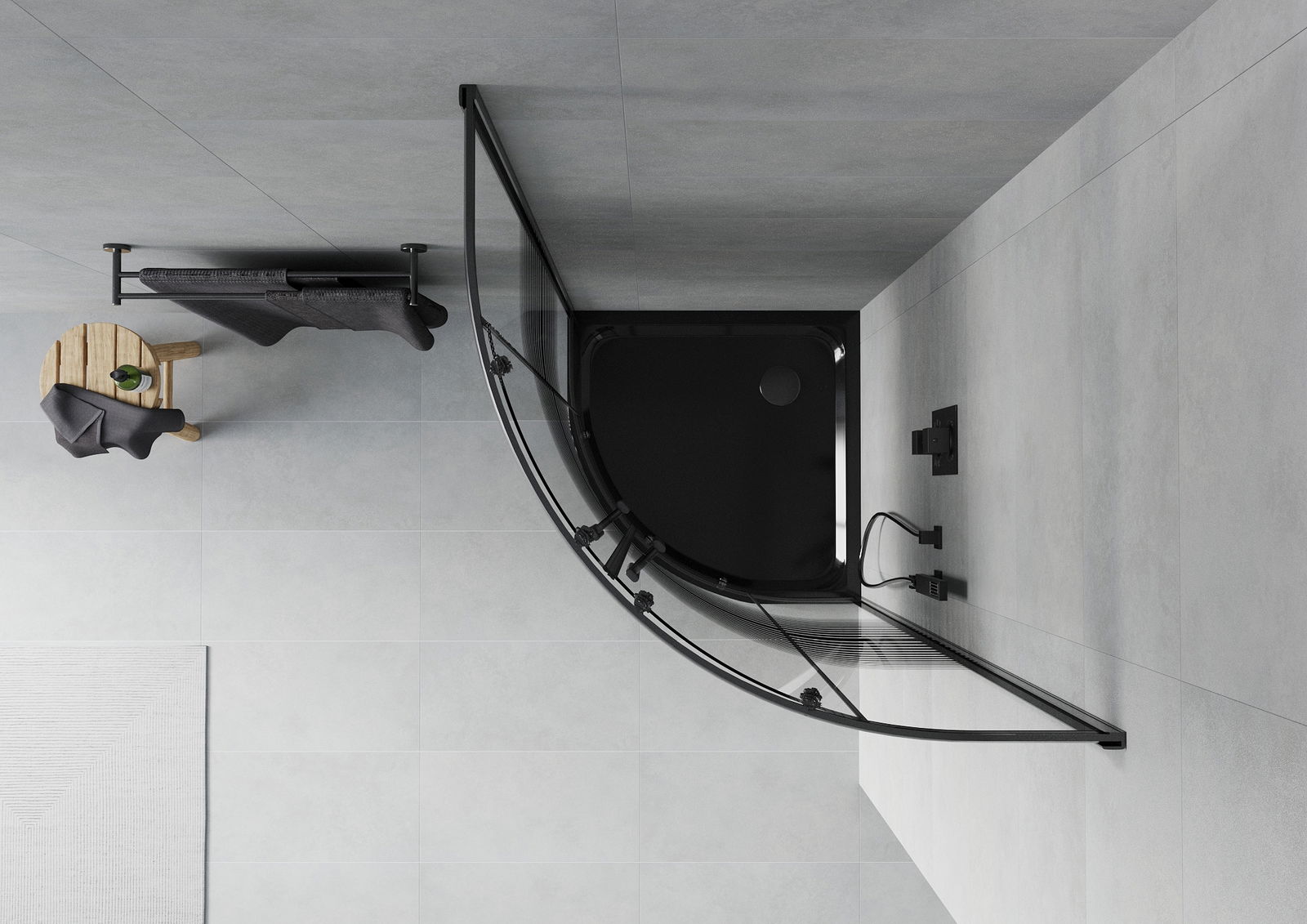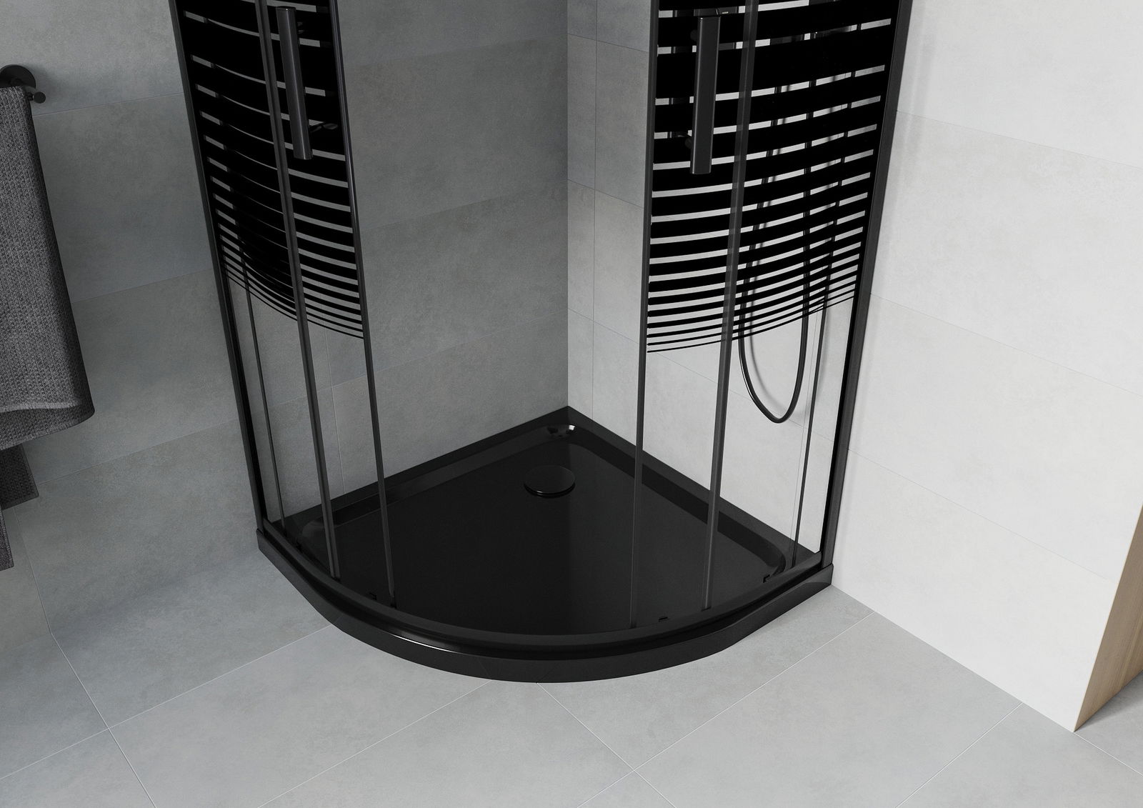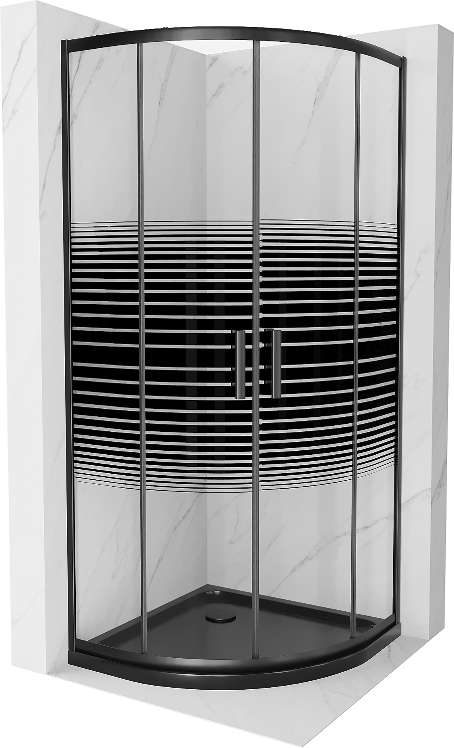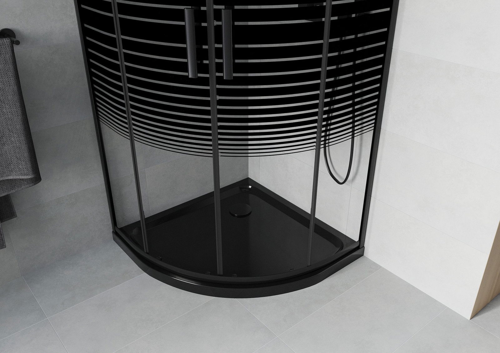 Mexen Rio Duschkabine halbrund 80 x 80 cm, schwarze Streifen, schwarz + Duschwanne Flat, schwarz - 863-080-080-70-20-4170B